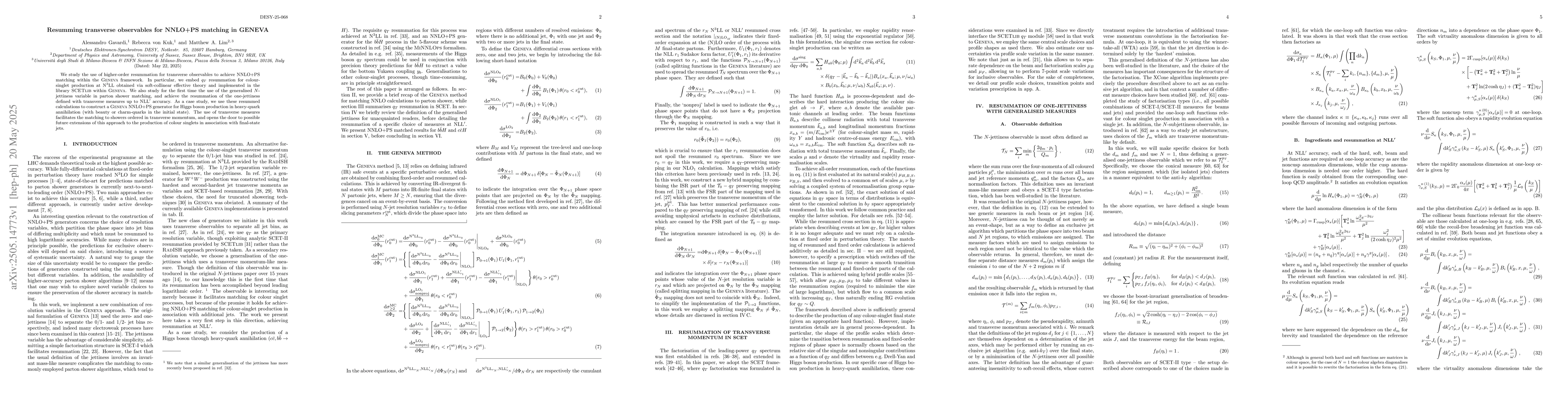 Development of a GENEVA NNLO+PS generator incorporating transverse observable resummation, specifically for Higgs production in heavy-quark annihilation.