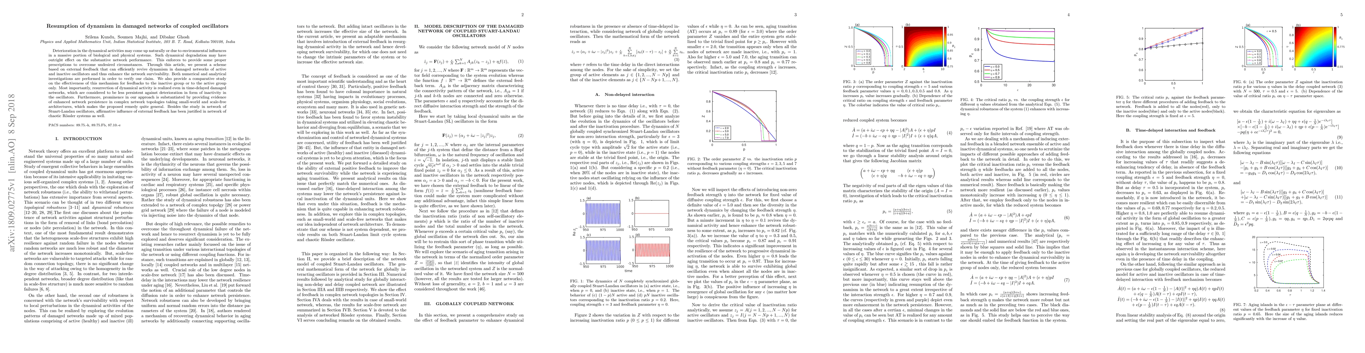 Deterioration in the dynamical activities may come up naturally or due to environmental influences in a massive portion of biological and physical systems. Such dynamical degradation may have outright effect on the substantive network performance. This enforces to provide some proper prescriptions to overcome undesired circumstances. Through this article, we present a scheme based on external feedback that can efficiently revive dynamism in damaged networks of active and inactive oscillators and thus enhance the network survivability. Both numerical and analytical investigations are performed in order to verify our claim. We also provide a comparative study on the effectiveness of this mechanism for feedbacks to the inactive group or to the active group only. Most importantly, resurrection of dynamical activity is realized even in time-delayed damaged networks, which are considered to be less persistent against deterioration in form of inactivity in the oscillators. Furthermore, prominence in our approach is substantiated by providing evidence of enhanced network persistence in complex network topologies taking small-world and scale-free architectures, which makes the proposed remedy quite general. Besides the study in network of Stuart-Landau oscillators, affirmative influence of external feedback has been justified in network of chaotic Rossler systems as well.