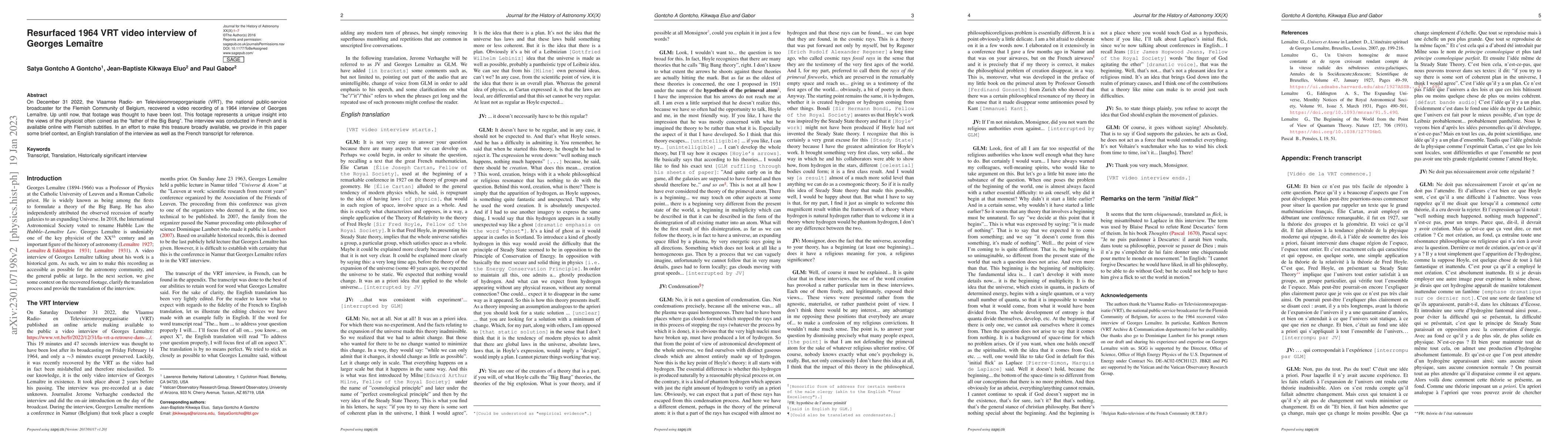 This paper discusses the rediscovery of a 1964 VRT video interview with Georges Lemaître, previously thought lost, offering unique insights into his views. The interview, conducted in French, is now available online with Flemish subtitles, and the paper includes an English translation and French transcript for broader accessibility.