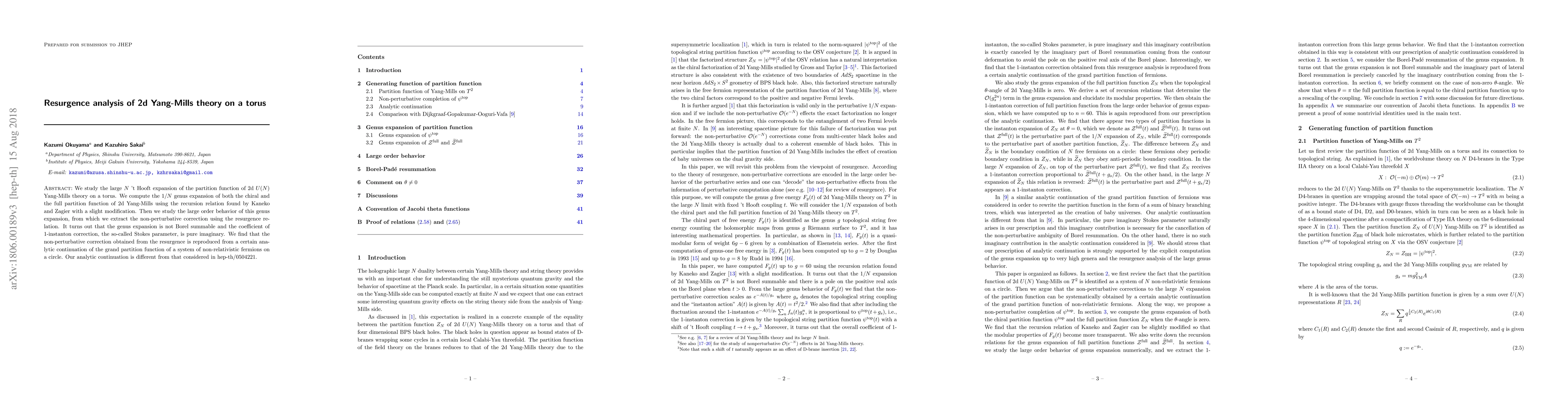 The paper presents a detailed resurgence analysis of 2d Yang-Mills theory on a torus, deriving a recursion relation for the topological string partition function Ztopn and identifying its quasi-modular properties.