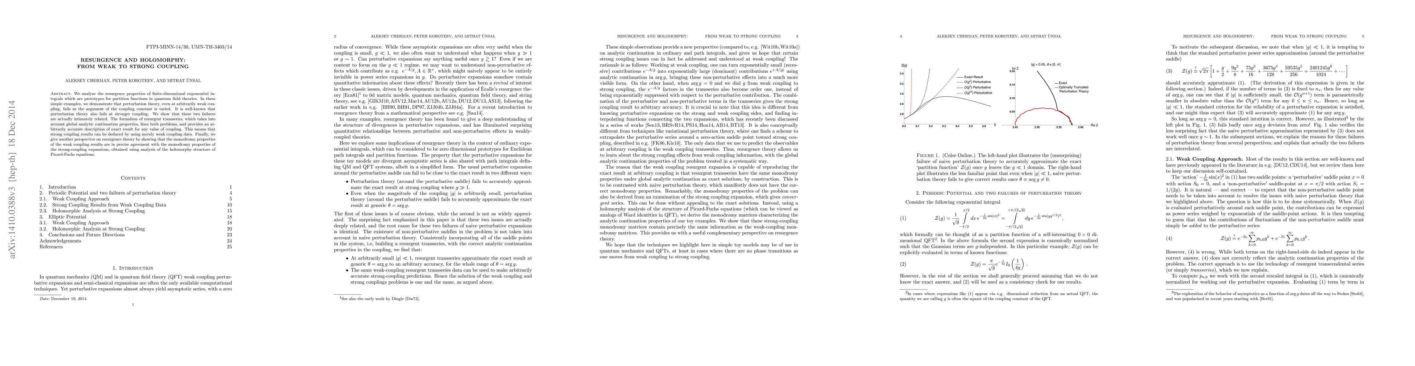 We analyze the resurgence properties of finite-dimensional exponential integrals which are prototypes for partition functions in quantum field theories. In these simple examples, we demonstrate that perturbation theory, even at arbitrarily weak coupling, fails as the argument of the coupling constant is varied. It is well-known that perturbation theory also fails at stronger coupling. We show that these two failures are actually intimately related. The formalism of resurgent transseries, which takes into account global analytic continuation properties, fixes both problems, and provides an arbitrarily accurate description of exact result for any value of coupling. This means that strong coupling results can be deduced by using merely weak coupling data. Finally, we give another perspective on resurgence theory by showing that the monodromy properties of the weak coupling results are in precise agreement with the monodromy properties of the strong-coupling expansions, obtained using analysis of the holomorphy structure of Picard-Fuchs equations.