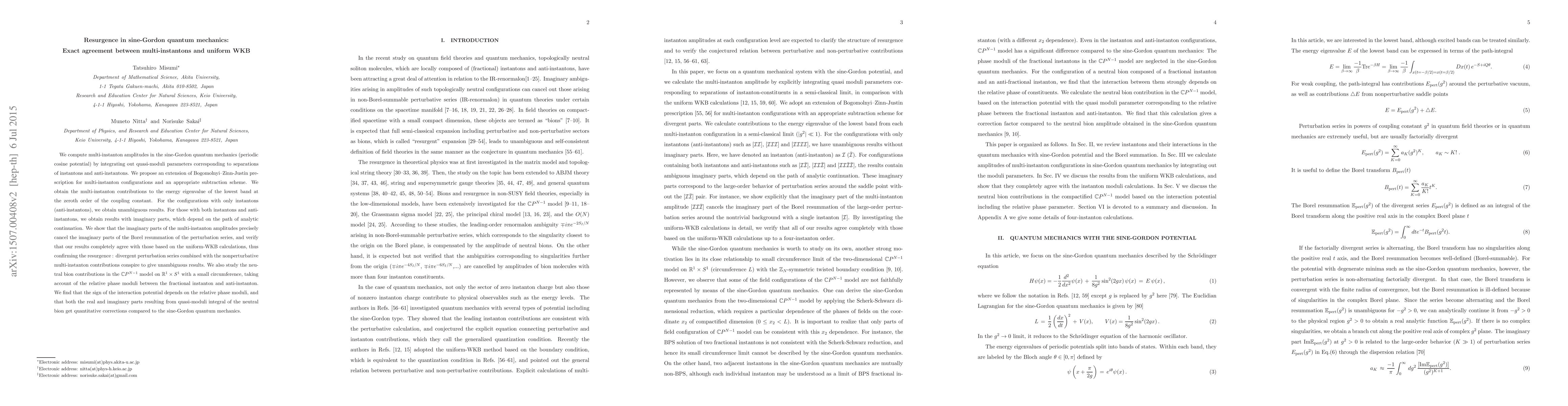 Researchers confirm resurgence in sine-Gordon quantum mechanics by calculating multi-instanton amplitudes that exactly agree with uniform WKB calculations, showing that non-perturbative corrections can produce unambiguous results.