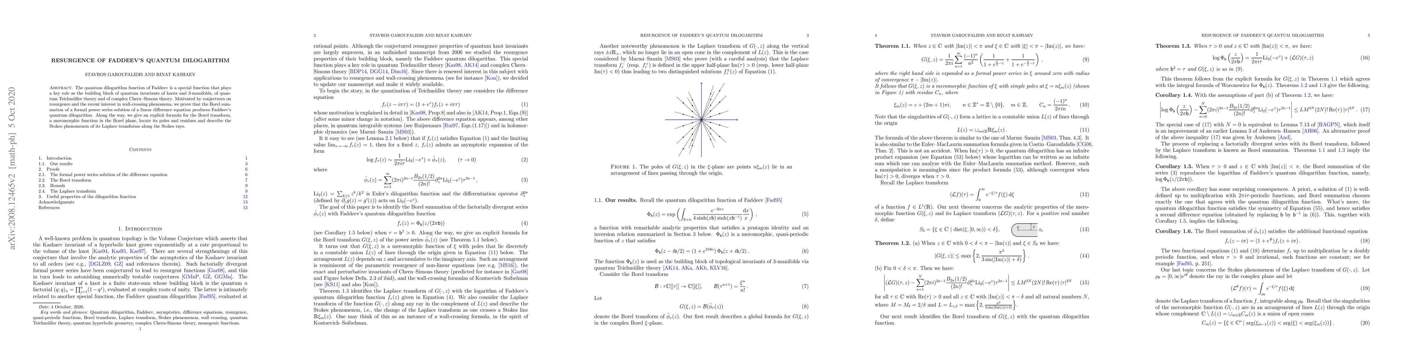 The research provides new insights into resurgence and wall-crossing phenomena, shedding light on the properties and behavior of Faddeev's quantum dilogarithm.