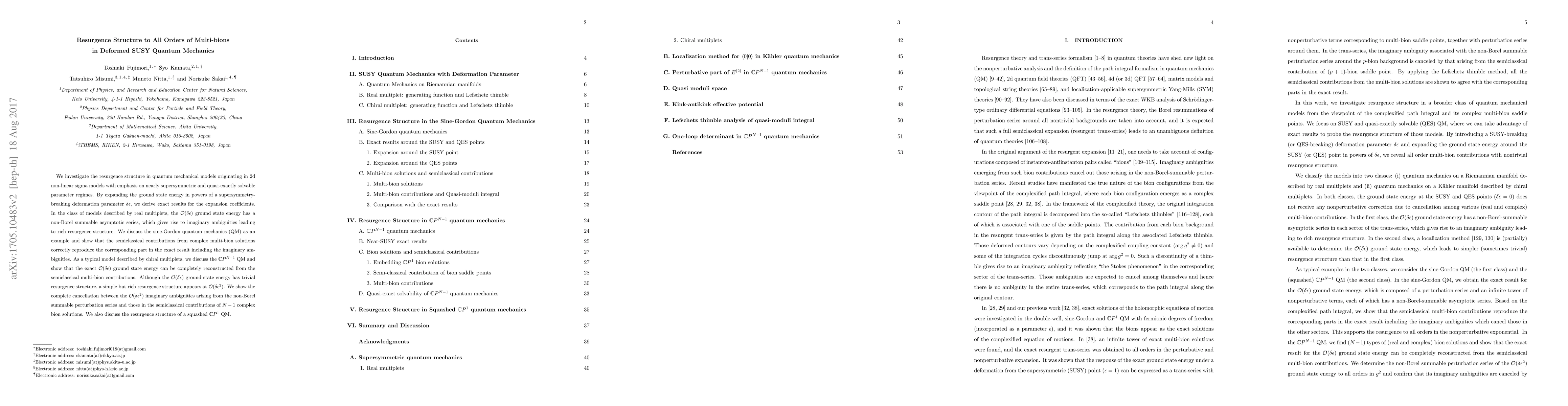 Researchers investigate resurgence structure in quantum mechanics models with supersymmetry-breaking deformations, finding complex multi-bion solutions reproduce exact results including imaginary ambiguities.