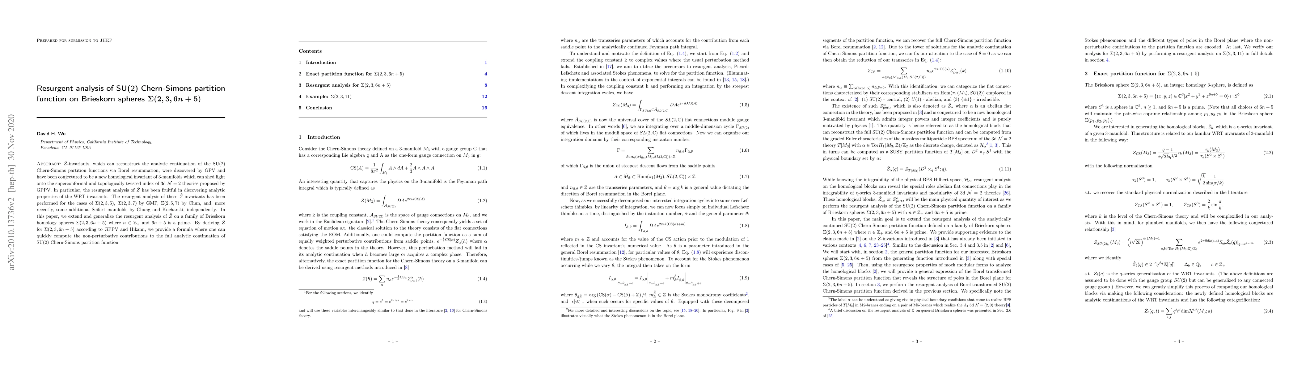 $\hat{Z}$-invariants, which can reconstruct the analytic continuation of the SU(2) Chern-Simons partition functions via Borel resummation, were discovered by GPV and have been conjectured to be a new homological invariant of 3-manifolds which can shed light onto the superconformal and topologically twisted index of 3d $\mathcal{N}=2$ theories proposed by GPPV. In particular, the resurgent analysis of $\hat{Z}$ has been fruitful in discovering analytic properties of the WRT invariants. The resurgent analysis of these $\hat{Z}$-invariants has been performed for the cases of $\Sigma(2,3,5),\ \Sigma(2,3,7)$ by GMP, $\Sigma(2,5,7)$ by Chun, and, more recently, some additional Seifert manifolds by Chung and Kucharski, independently. In this paper, we extend and generalize the resurgent analysis of $\hat{Z}$ on a family of Brieskorn homology spheres $\Sigma(2,3,6n+5)$ where $n\in\mathbb{Z}_+$ and $6n+5$ is a prime. By deriving $\hat{Z}$ for $\Sigma(2,3,6n+5)$ according to GPPV and Hikami, we provide a formula where one can quickly compute the non-perturbative contributions to the full analytic continuation of SU(2) Chern-Simons partition function.