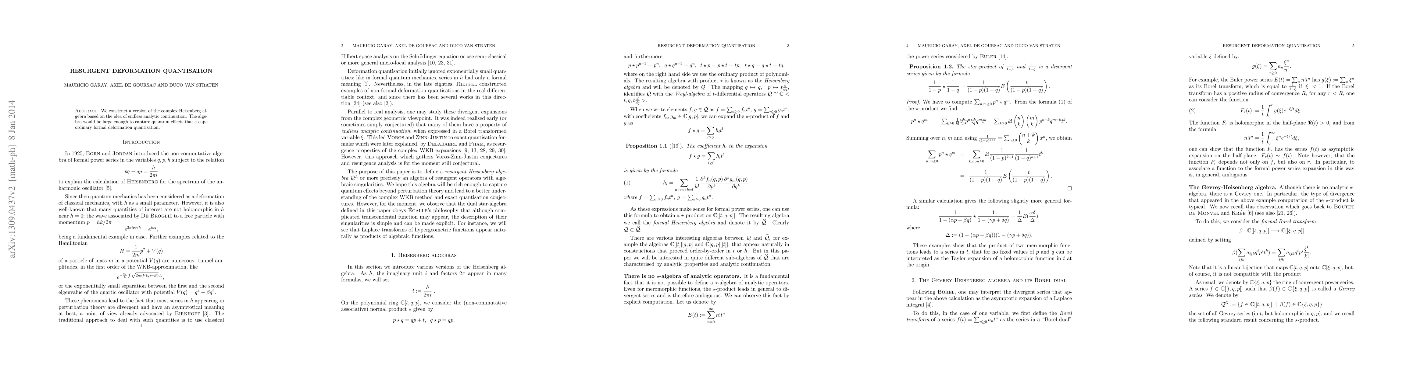 Title: Resurgent Deformation Quantisation Summary: The paper constructs a complex Heisenberg algebra through endless analytic continuation, presenting an integral formula for products of resurgent operators, aiming to capture quantum effects beyond standard formal deformation quantisation.