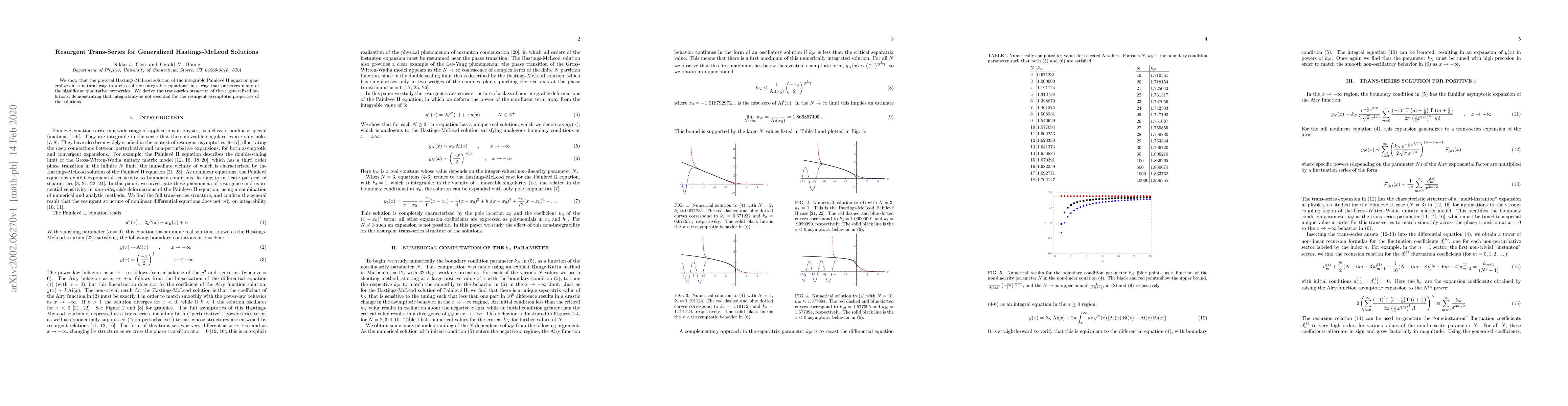 This paper demonstrates that the physical Hastings-McLeod solution of the Painleve II equation extends to non-integrable equations, preserving key qualitative properties. It reveals the trans-series structure of these generalized solutions, indicating that integrability is not necessary for the resurgent asymptotic behavior.