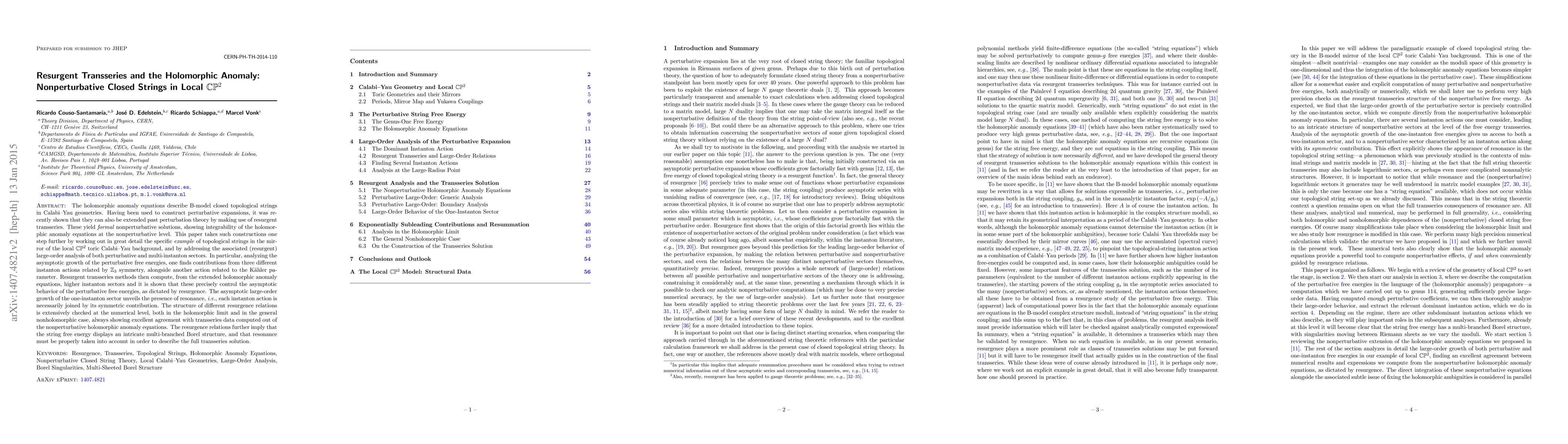 This paper extends the holomorphic anomaly equations to nonperturbative regimes using resurgent transseries, specifically applied to closed strings in the local CP² mirror geometry. It reveals intricate multi-instanton contributions and demonstrates that resurgence relations are crucial for describing the full asymptotic behavior of perturbative free energies in this context.