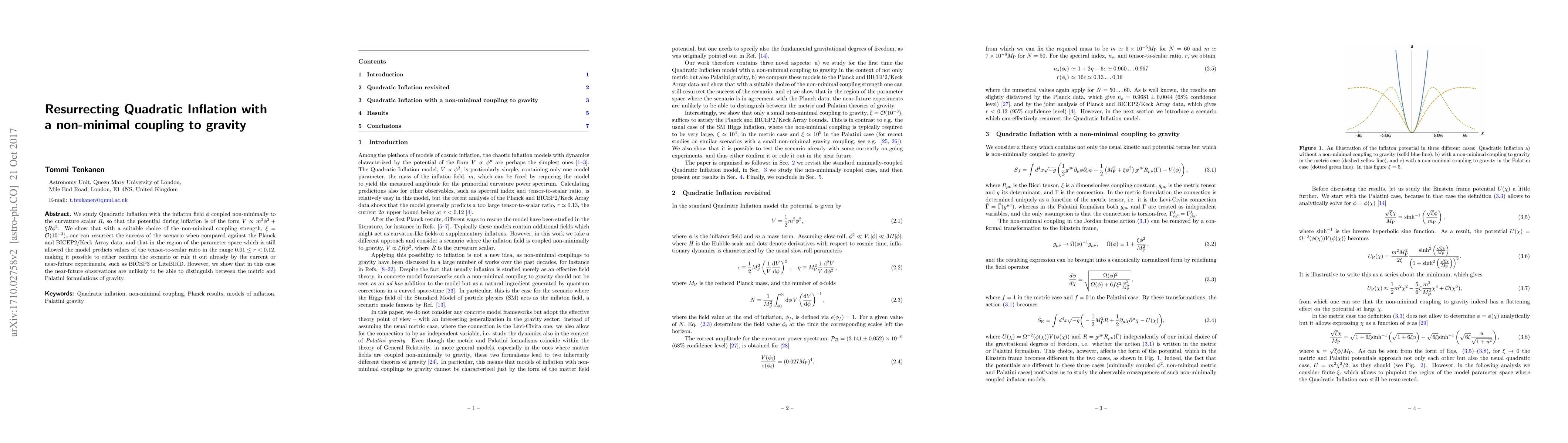 We study Quadratic Inflation with the inflaton field $\phi$ coupled non-minimally to the curvature scalar $R$, so that the potential during inflation is of the form $V\propto m^2\phi^2+\xi R\phi^2$. We show that with a suitable choice of the non-minimal coupling strength, $\xi=\mathcal{O}(10^{-3})$, one can resurrect the success of the scenario when compared against the Planck and BICEP2/Keck Array data, and that in the region of the parameter space which is still allowed the model predicts values of the tensor-to-scalar ratio in the range $0.01\leq r < 0.12$, making it possible to either confirm the scenario or rule it out already by the current or near-future experiments, such as BICEP3 or LiteBIRD. However, we show that in this case the near-future observations are unlikely to be able to distinguish between the metric and Palatini formulations of gravity.