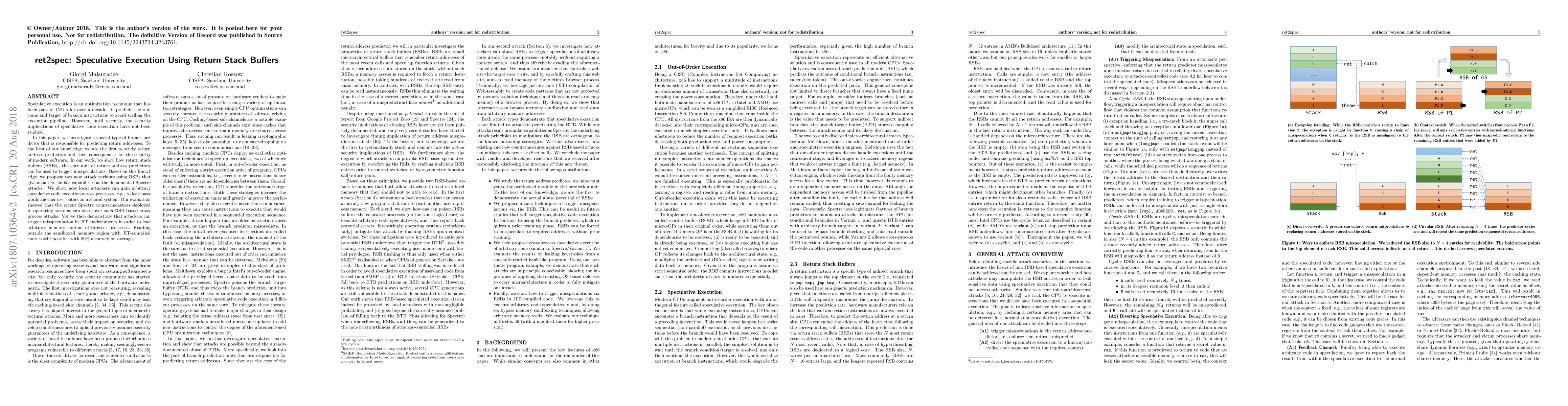 This paper explores the security implications of speculative execution through return stack buffers (RSBs) in branch predictors, proposing new attack variants similar to Spectre. It demonstrates that RSBs can trigger misspeculations to achieve arbitrary speculative code execution, highlighting vulnerabilities in JIT environments despite existing Spectre countermeasures.