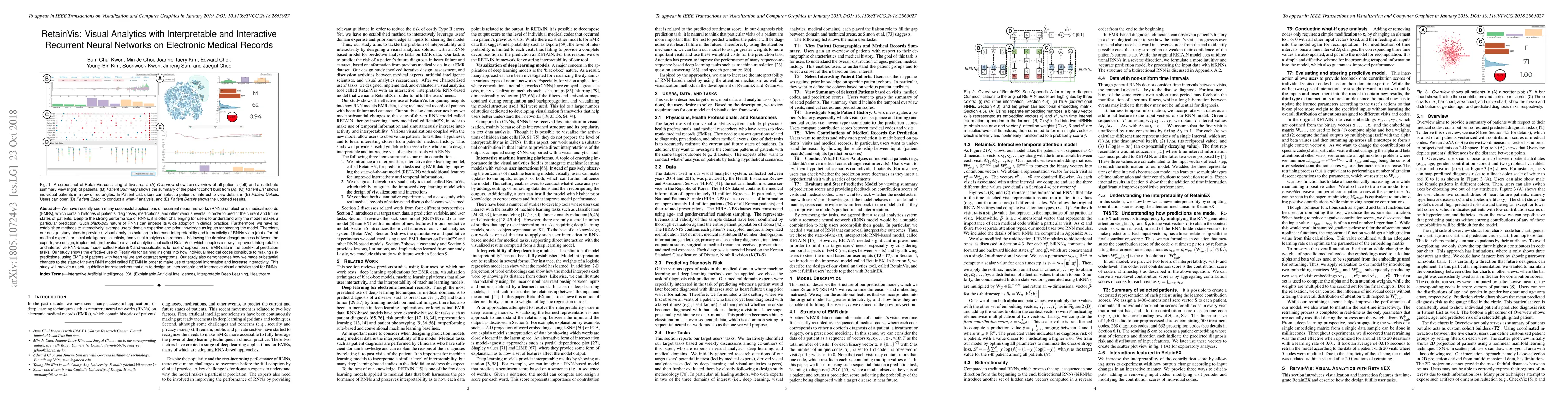 This research paper introduces RetainVis, a visual analytics tool that improves interpretability and interactivity of recurrent neural networks on electronic medical records, allowing clinicians to understand model predictions and explore data insights.