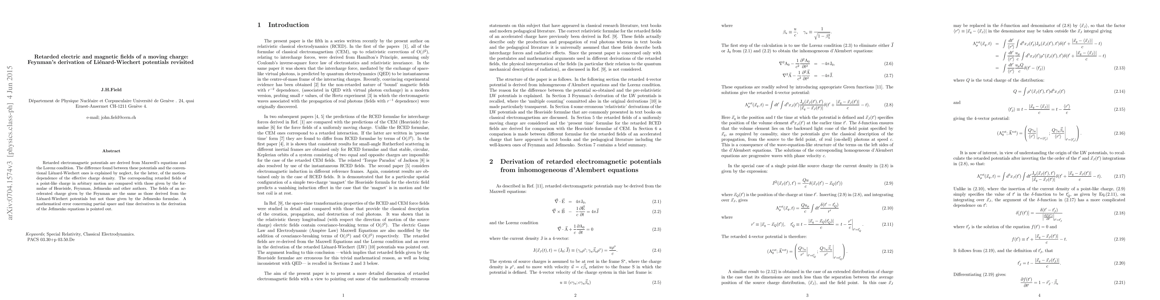 This paper revisits Feynman's derivation of the Liénard-Wiechert potentials, explaining the differences from conventional derivations by considering the motion-dependence of the effective charge density. It identifies a mathematical error in Jefimenko's equations and confirms that Feynman's fields match those derived from Liénard-Wiechert potentials.