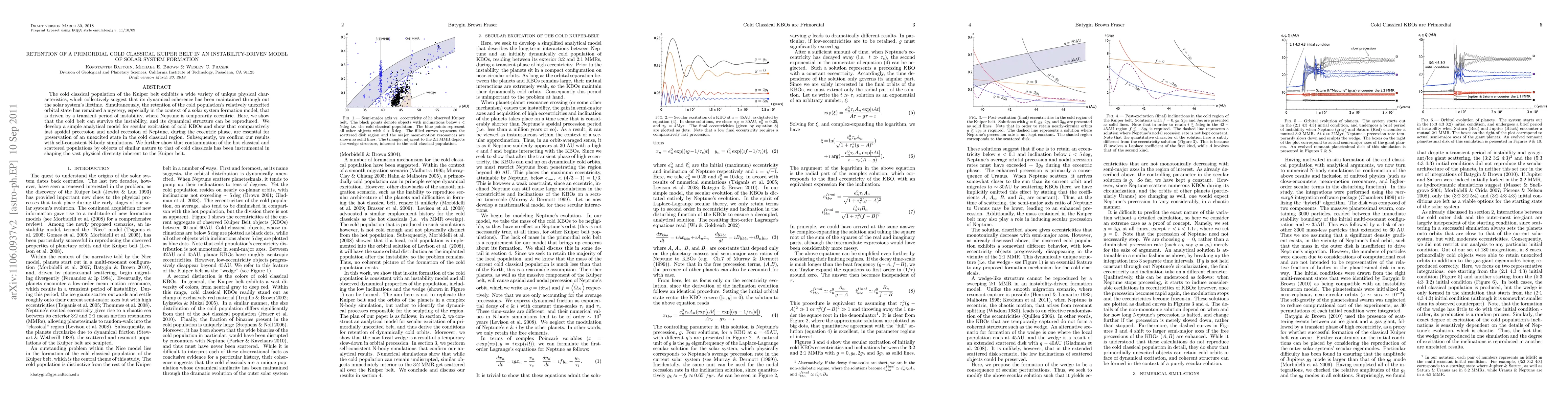 The cold classical population of the Kuiper belt exhibits a wide variety of unique physical characteristics, which collectively suggest that its dynamical coherence has been maintained through out the solar system's lifetime. Simultaneously, the retention of the cold population's relatively unexcited orbital state has remained a mystery, especially in the context of a solar system formation model, that is driven by a transient period of instability, where Neptune is temporarily eccentric. Here, we show that the cold belt can survive the instability, and its dynamical structure can be reproduced. We develop a simple analytical model for secular excitation of cold KBOs and show that comparatively fast apsidal precession and nodal recession of Neptune, during the eccentric phase, are essential for preservation of an unexcited state in the cold classical region. Subsequently, we confirm our results with self-consistent N-body simulations. We further show that contamination of the hot classical and scattered populations by objects of similar nature to that of cold classicals has been instrumental in shaping the vast physical diversity inherent to the Kuiper belt.