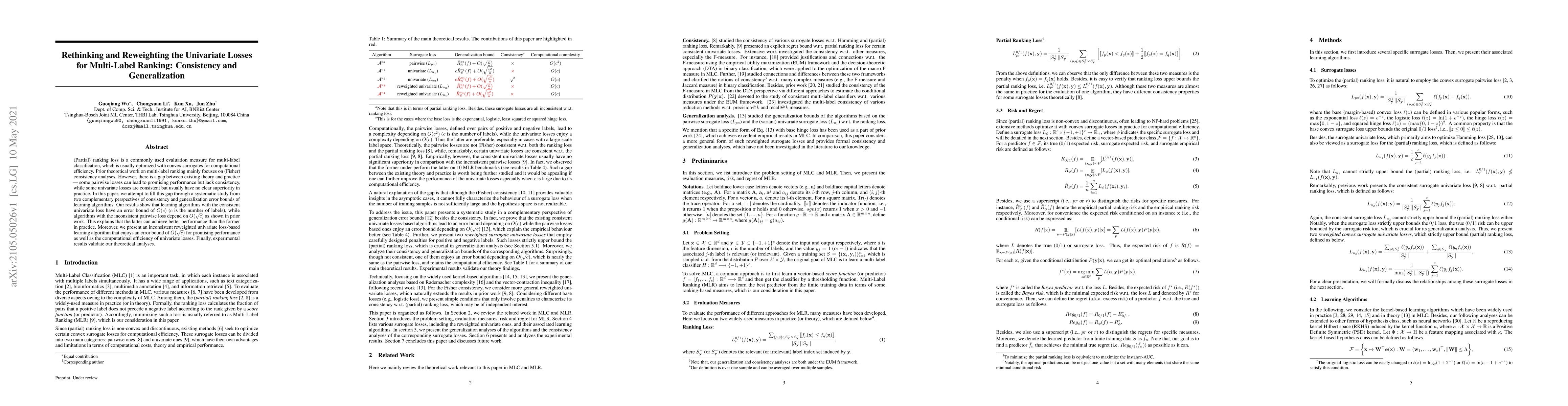 (Partial) ranking loss is a commonly used evaluation measure for multi-label classification, which is usually optimized with convex surrogates for computational efficiency. Prior theoretical work on multi-label ranking mainly focuses on (Fisher) consistency analyses. However, there is a gap between existing theory and practice -- some pairwise losses can lead to promising performance but lack consistency, while some univariate losses are consistent but usually have no clear superiority in practice. In this paper, we attempt to fill this gap through a systematic study from two complementary perspectives of consistency and generalization error bounds of learning algorithms. Our results show that learning algorithms with the consistent univariate loss have an error bound of $O(c)$ ($c$ is the number of labels), while algorithms with the inconsistent pairwise loss depend on $O(\sqrt{c})$ as shown in prior work. This explains that the latter can achieve better performance than the former in practice. Moreover, we present an inconsistent reweighted univariate loss-based learning algorithm that enjoys an error bound of $O(\sqrt{c})$ for promising performance as well as the computational efficiency of univariate losses. Finally, experimental results validate our theoretical analyses.