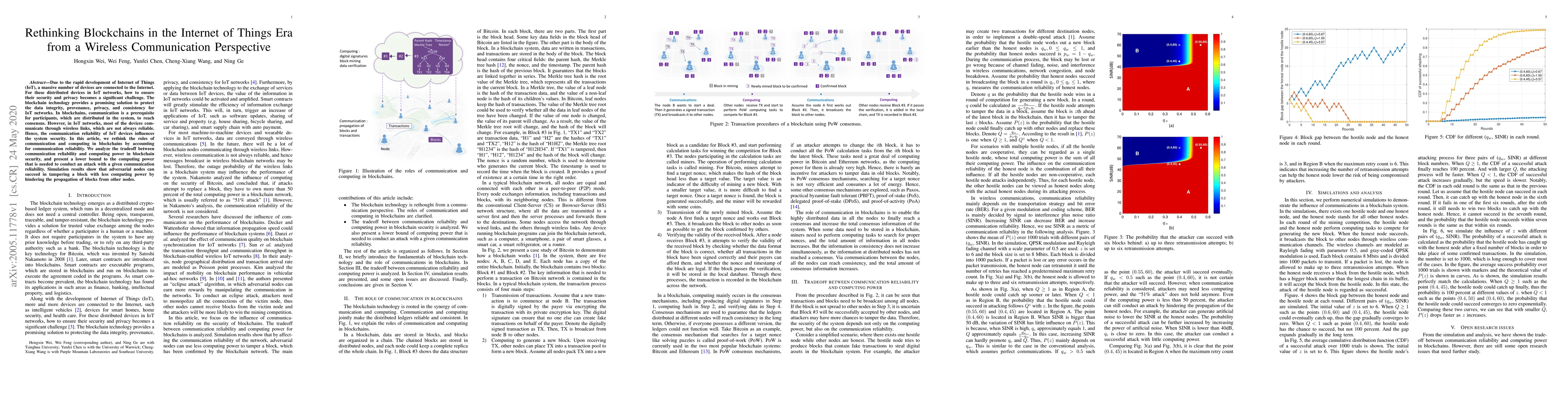 This paper explores how blockchain technology can enhance security and privacy in IoT networks, emphasizing the critical role of reliable wireless communication. It analyzes the trade-off between communication reliability and computing power, presenting a lower bound for attack computing power given communication reliability, and demonstrates that adversarial nodes can compromise blocks with less power by disrupting block propagation.