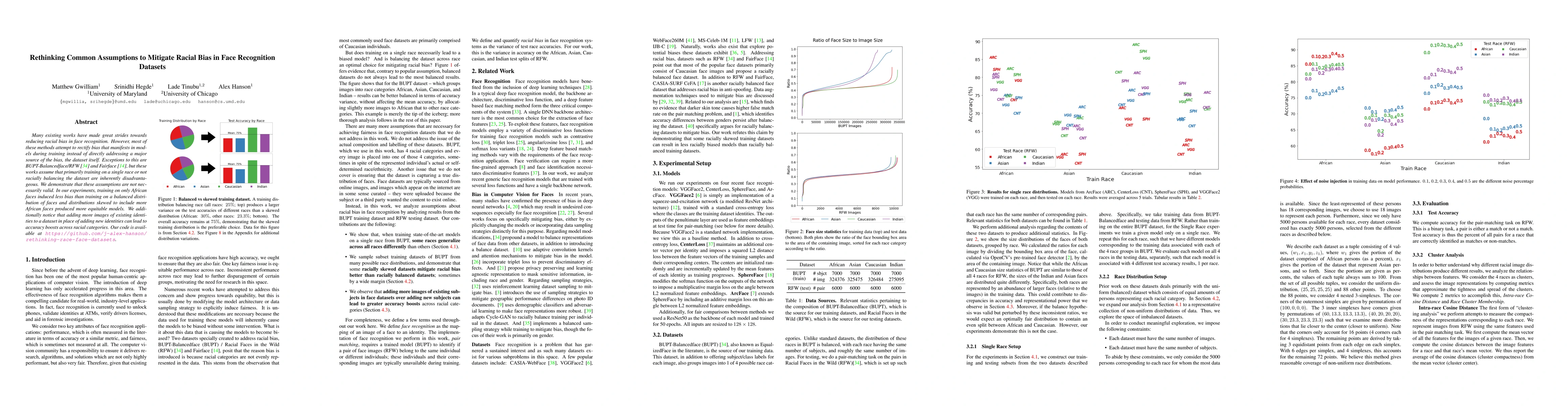 This paper challenges common assumptions about racial bias in face recognition datasets, demonstrating that training on a predominantly African face dataset can reduce bias more effectively than balanced datasets. It also finds that augmenting existing identities rather than introducing new ones can improve model accuracy across racial groups.