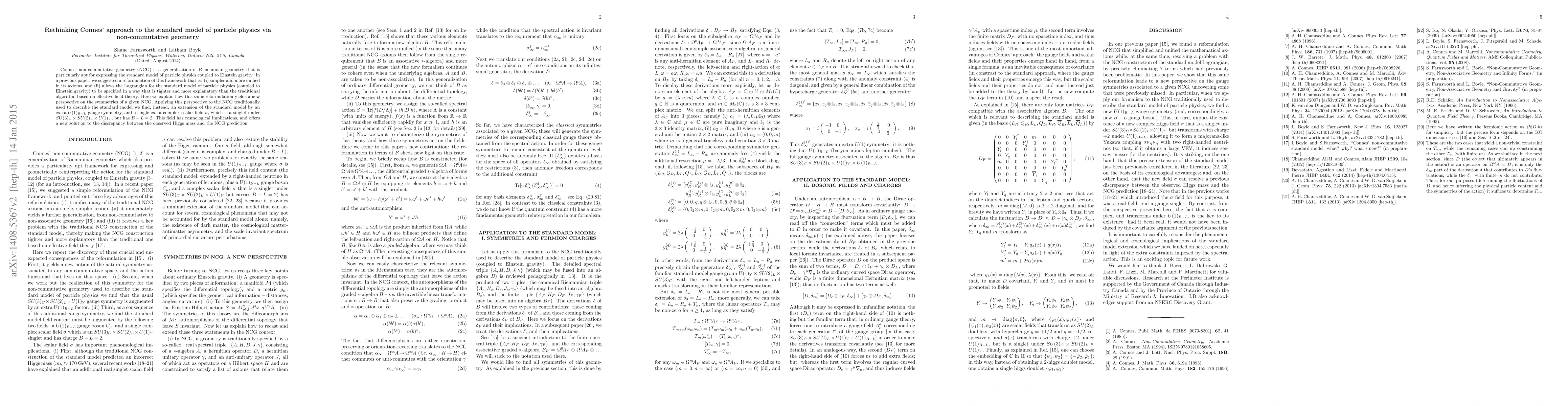 Connes' non-commutative geometry (NCG) is a generalization of Riemannian geometry that is particularly apt for expressing the standard model of particle physics coupled to Einstein gravity. In a previous paper, we suggested a reformulation of this framework that is: (i) simpler and more unified in its axioms, and (ii) allows the Lagrangian for the standard model of particle physics (coupled to Einstein gravity) to be specified in a way that is tighter and more explanatory than the traditional algorithm based on effective field theory. Here we explain how this same reformulation yields a new perspective on the symmetries of a given NCG. Applying this perspective to the NCG traditionally used to describe the standard model we find, instead, an extension of the standard model by an extra $U(1)_{B-L}$ gauge symmetry, and a single extra complex scalar field $\sigma$, which is a singlet under $SU(3)_{C}\times SU(2)_{L}\times U(1)_{Y}$, but has $B-L=2$. This field has cosmological implications, and offers a new solution to the discrepancy between the observed Higgs mass and the NCG prediction.