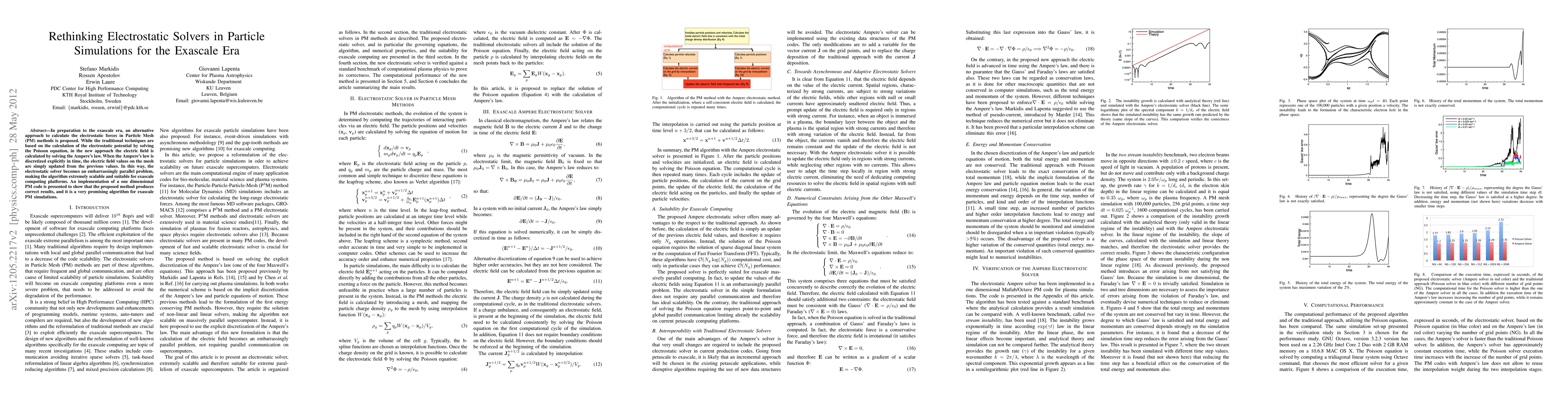 This paper proposes a novel approach to calculate electrostatic forces in Particle Mesh methods for exascale computing, shifting from solving the Poisson equation to solving the Ampere's law to update electric fields. This method significantly enhances parallel scalability, demonstrating promising results in a one-dimensional implementation.
