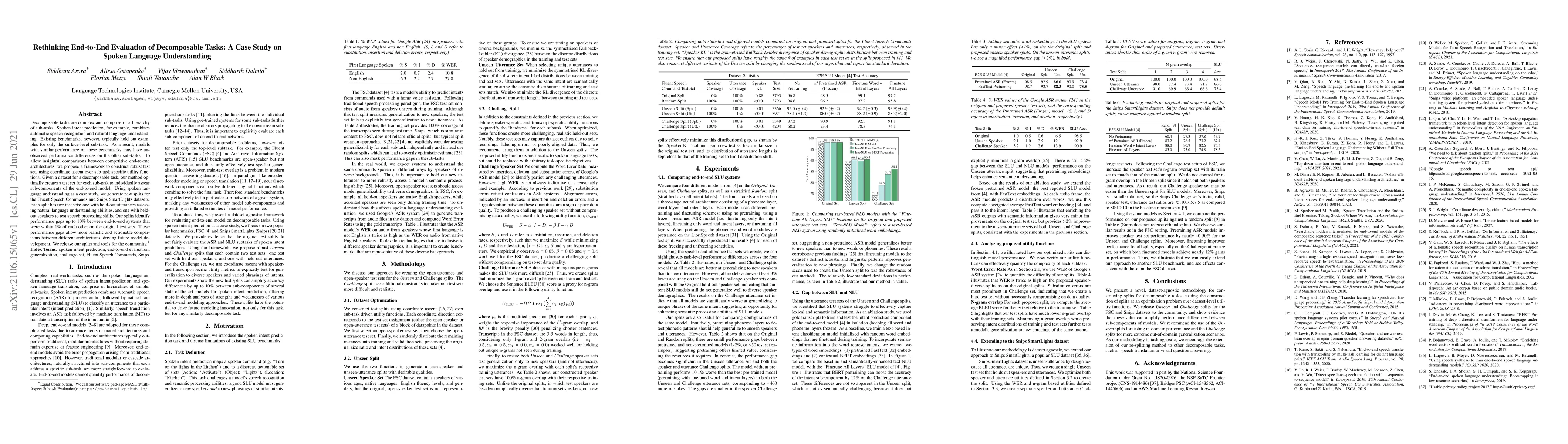 This paper proposes a framework to better evaluate decomposable tasks like spoken language understanding by creating robust test sets for each sub-task. It identifies performance discrepancies between models that were previously indistinguishable on standard benchmarks, offering more realistic comparisons and driving future model improvements.