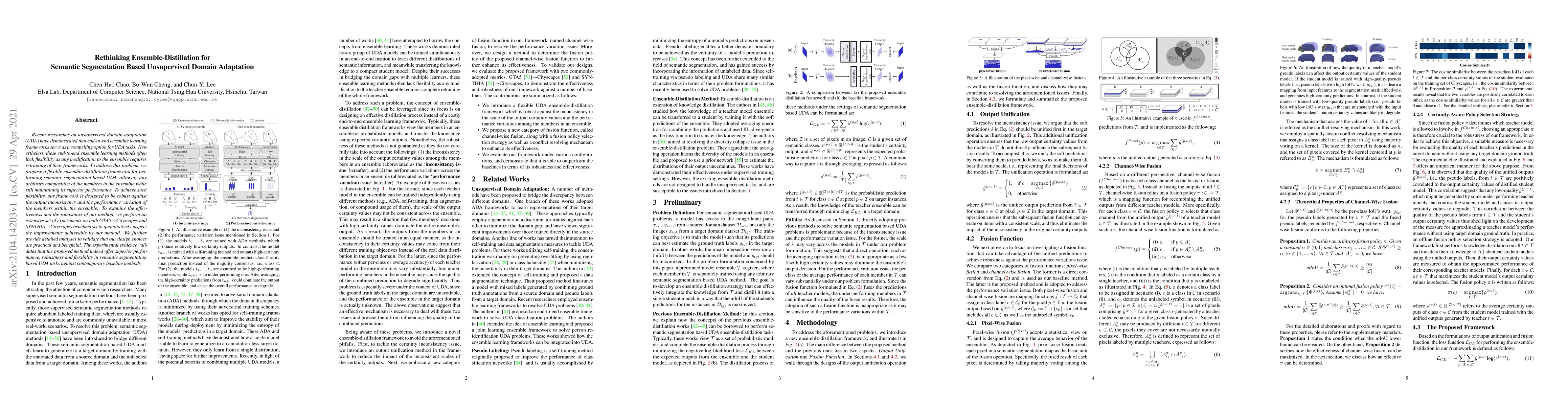 This paper proposes a flexible ensemble-distillation framework for unsupervised domain adaptation in semantic segmentation, allowing for arbitrary ensemble compositions without requiring full retraining. The method demonstrates superior performance, robustness, and flexibility compared to existing end-to-end ensemble learning approaches.