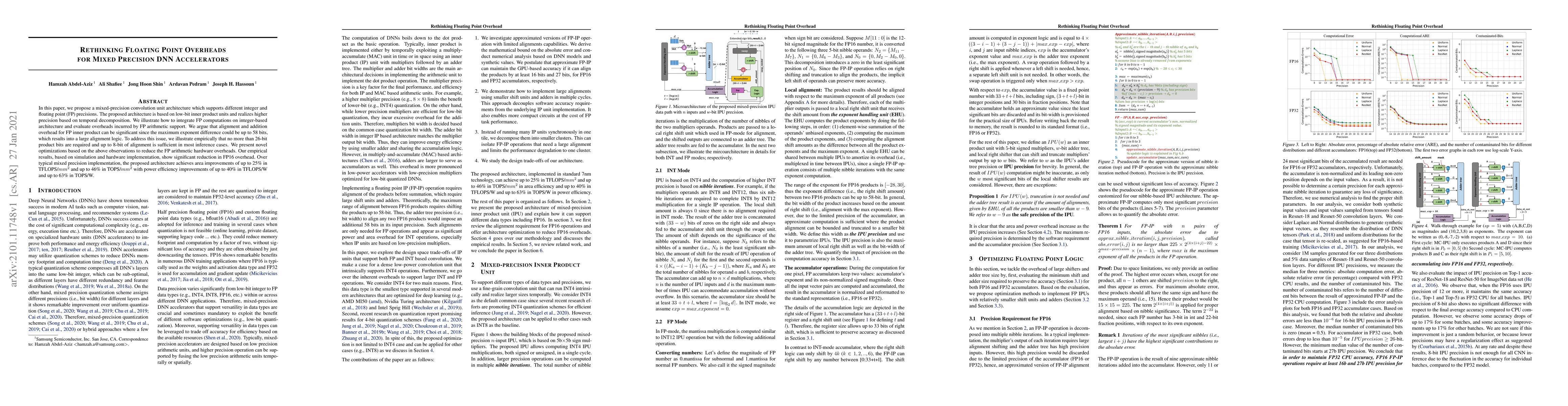 A new mixed-precision convolution unit architecture reduces floating point overheads in deep neural network accelerators, achieving area and power efficiency improvements of up to 25% and 40% respectively.