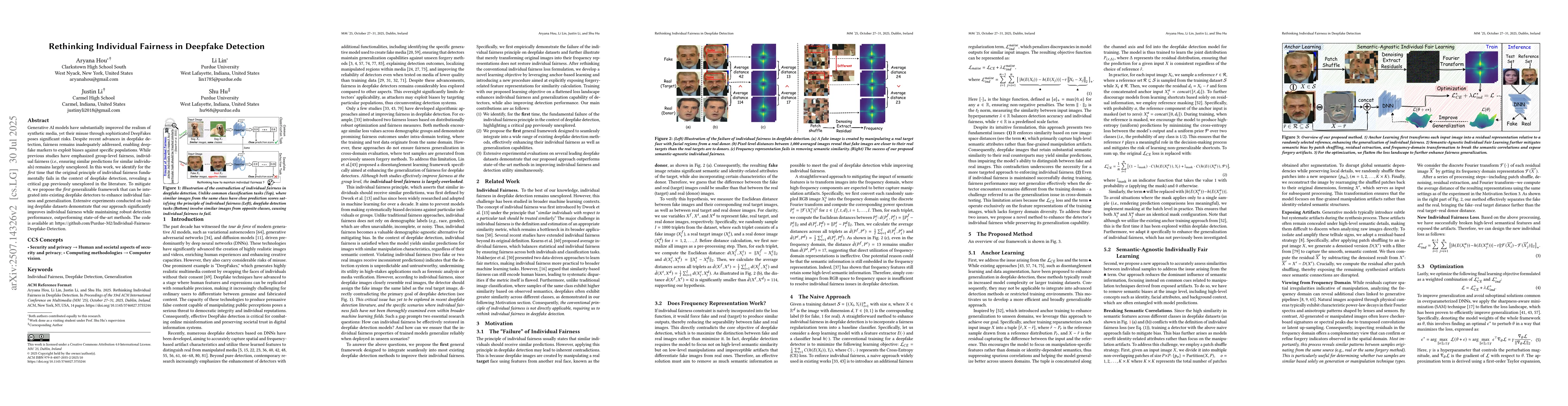 This work introduces a new perspective on fairness in AI systems by prioritizing individual fairness and demonstrating its importance in deepfake detection.