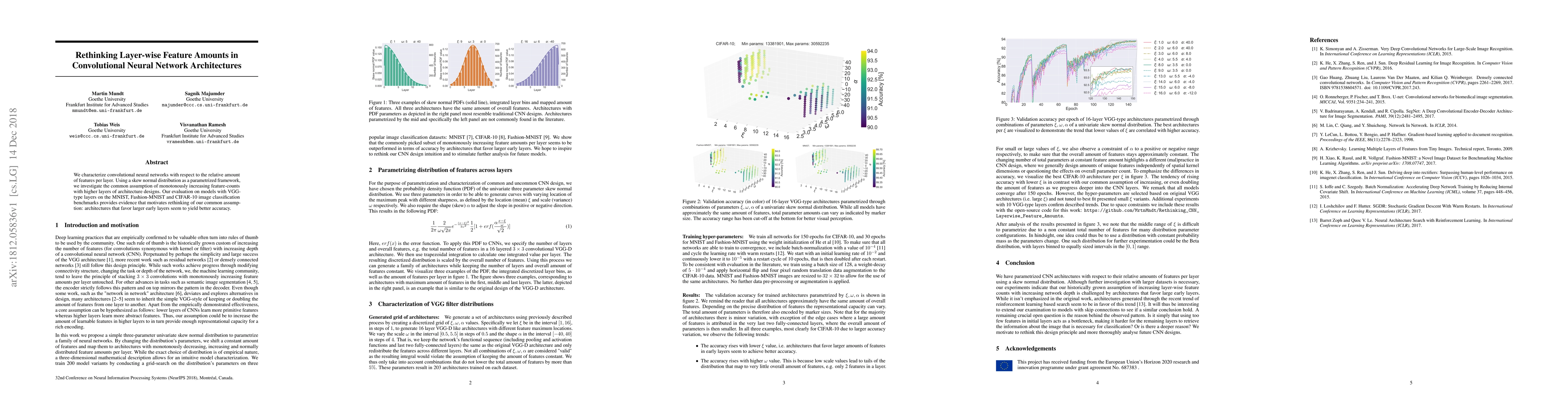We characterize convolutional neural networks with respect to the relative amount of features per layer. Using a skew normal distribution as a parametrized framework, we investigate the common assumption of monotonously increasing feature-counts with higher layers of architecture designs. Our evaluation on models with VGG-type layers on the MNIST, Fashion-MNIST and CIFAR-10 image classification benchmarks provides evidence that motivates rethinking of our common assumption: architectures that favor larger early layers seem to yield better accuracy.