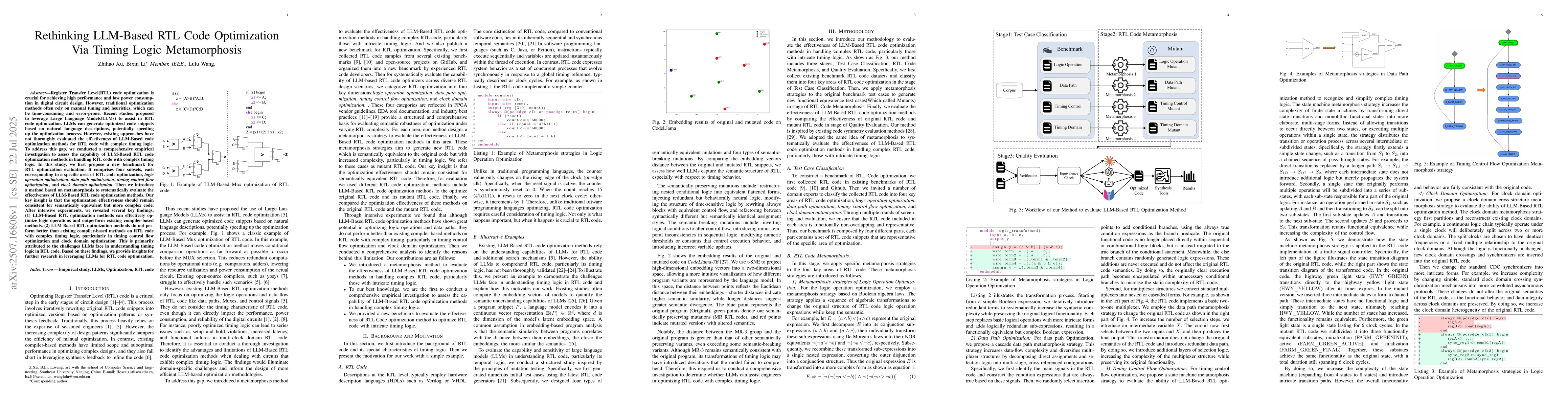 Register Transfer Level(RTL) code optimization is crucial for achieving high performance and low power consumption in digital circuit design. However, traditional optimization methods often rely on manual tuning and heuristics, which can be time-consuming and error-prone. Recent studies proposed to leverage Large Language Models(LLMs) to assist in RTL code optimization. LLMs can generate optimized code snippets based on natural language descriptions, potentially speeding up the optimization process. However, existing approaches have not thoroughly evaluated the effectiveness of LLM-Based code optimization methods for RTL code with complex timing logic. To address this gap, we conducted a comprehensive empirical investigation to assess the capability of LLM-Based RTL code optimization methods in handling RTL code with complex timing logic. In this study, we first propose a new benchmark for RTL optimization evaluation. It comprises four subsets, each corresponding to a specific area of RTL code optimization. Then we introduce a method based on metamorphosis to systematically evaluate the effectiveness of LLM-Based RTL code optimization methods.Our key insight is that the optimization effectiveness should remain consistent for semantically equivalent but more complex code. After intensive experiments, we revealed several key findings. (1) LLM-Based RTL optimization methods can effectively optimize logic operations and outperform existing compiler-based methods. (2) LLM-Based RTL optimization methods do not perform better than existing compiler-based methods on RTL code with complex timing logic, particularly in timing control flow optimization and clock domain optimization. This is primarily attributed to the challenges LLMs face in understanding timing logic in RTL code. Based on these findings, we provide insights for further research in leveraging LLMs for RTL code optimization.
