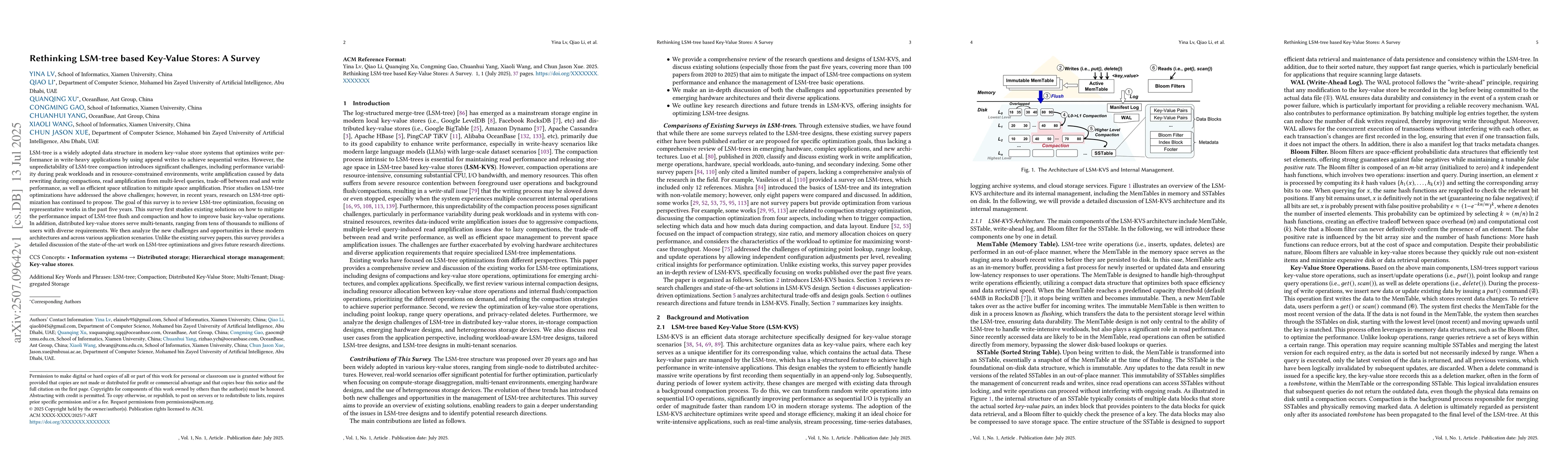 This survey is crucial for understanding the state-of-the-art in LSM-tree optimizations, providing insights into recent advancements, and identifying future research directions, which are essential for improving the performance and efficiency of key-value store systems in modern, diverse application scenarios.