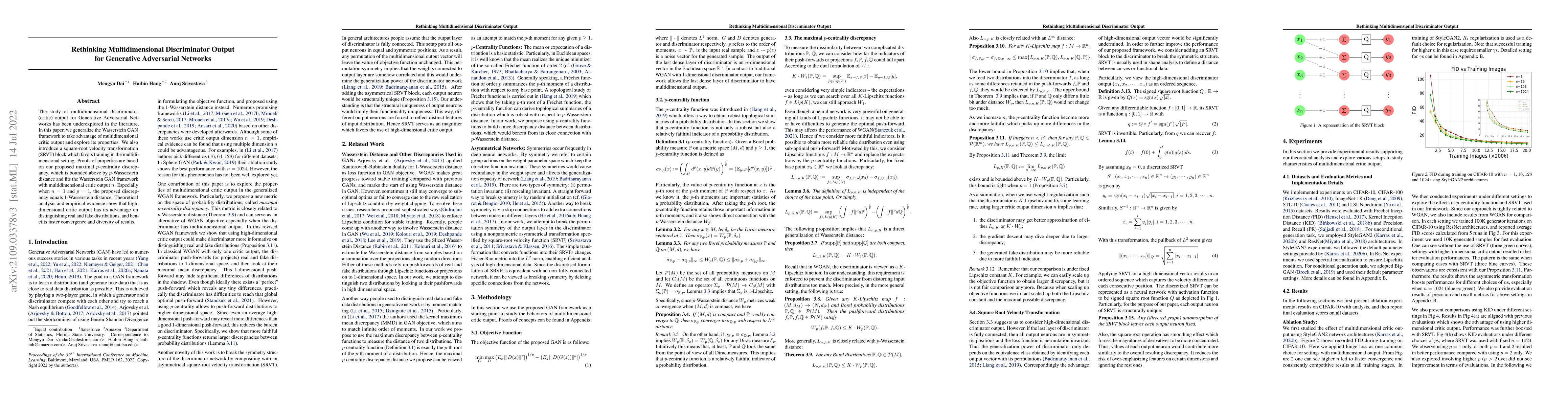 This paper generalizes the Wasserstein GAN framework to utilize multidimensional discriminator output, introducing a square-root velocity transformation block to enhance training. Theoretical analysis and empirical evidence demonstrate that multidimensional critic output improves convergence and diversity in generative adversarial networks.