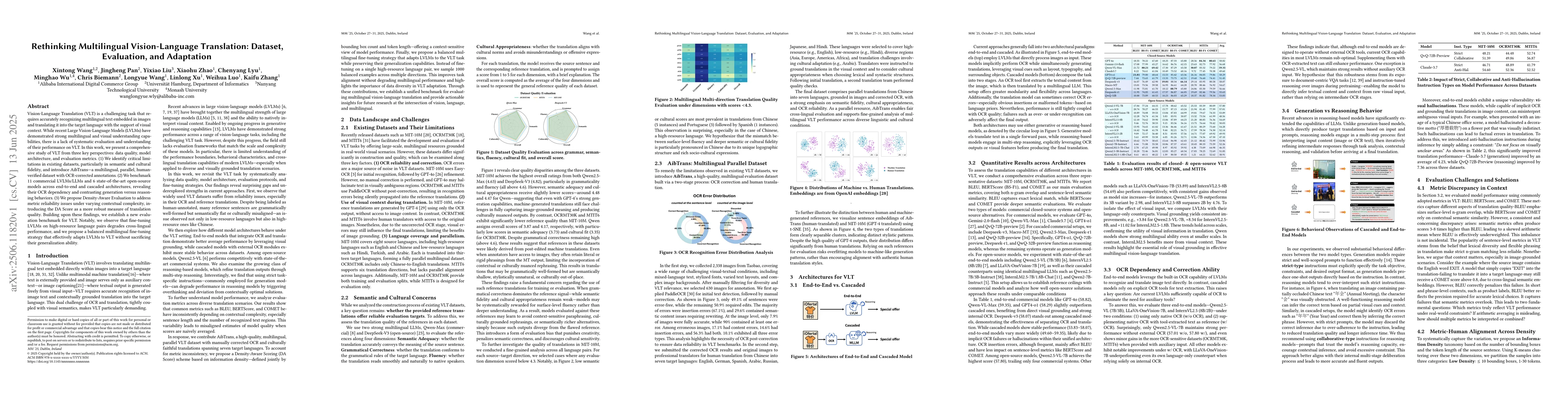 Vision-Language Translation (VLT) is a challenging task that requires accurately recognizing multilingual text embedded in images and translating it into the target language with the support of visual context. While recent Large Vision-Language Models (LVLMs) have demonstrated strong multilingual and visual understanding capabilities, there is a lack of systematic evaluation and understanding of their performance on VLT. In this work, we present a comprehensive study of VLT from three key perspectives: data quality, model architecture, and evaluation metrics. (1) We identify critical limitations in existing datasets, particularly in semantic and cultural fidelity, and introduce AibTrans -- a multilingual, parallel, human-verified dataset with OCR-corrected annotations. (2) We benchmark 11 commercial LVLMs/LLMs and 6 state-of-the-art open-source models across end-to-end and cascaded architectures, revealing their OCR dependency and contrasting generation versus reasoning behaviors. (3) We propose Density-Aware Evaluation to address metric reliability issues under varying contextual complexity, introducing the DA Score as a more robust measure of translation quality. Building upon these findings, we establish a new evaluation benchmark for VLT. Notably, we observe that fine-tuning LVLMs on high-resource language pairs degrades cross-lingual performance, and we propose a balanced multilingual fine-tuning strategy that effectively adapts LVLMs to VLT without sacrificing their generalization ability.