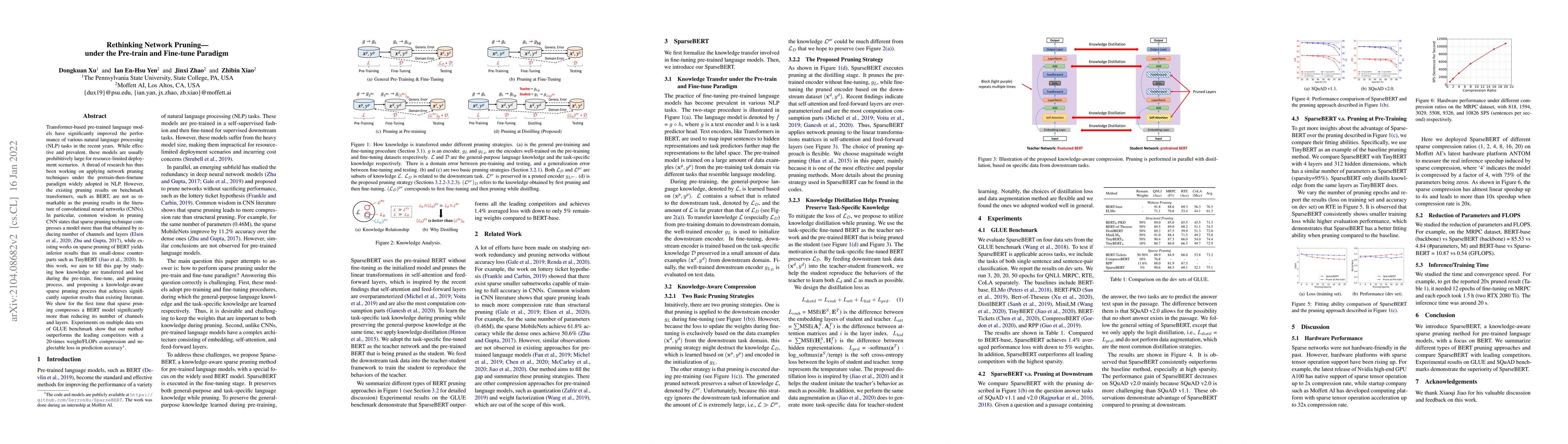Transformer-based pre-trained language models have significantly improved the performance of various natural language processing (NLP) tasks in the recent years. While effective and prevalent, these models are usually prohibitively large for resource-limited deployment scenarios. A thread of research has thus been working on applying network pruning techniques under the pretrain-then-finetune paradigm widely adopted in NLP. However, the existing pruning results on benchmark transformers, such as BERT, are not as remarkable as the pruning results in the literature of convolutional neural networks (CNNs). In particular, common wisdom in pruning CNN states that sparse pruning technique compresses a model more than that obtained by reducing number of channels and layers (Elsen et al., 2020; Zhu and Gupta, 2017), while existing works on sparse pruning of BERT yields inferior results than its small-dense counterparts such as TinyBERT (Jiao et al., 2020). In this work, we aim to fill this gap by studying how knowledge are transferred and lost during the pre-train, fine-tune, and pruning process, and proposing a knowledge-aware sparse pruning process that achieves significantly superior results than existing literature. We show for the first time that sparse pruning compresses a BERT model significantly more than reducing its number of channels and layers. Experiments on multiple data sets of GLUE benchmark show that our method outperforms the leading competitors with a 20-times weight/FLOPs compression and neglectable loss in prediction accuracy.