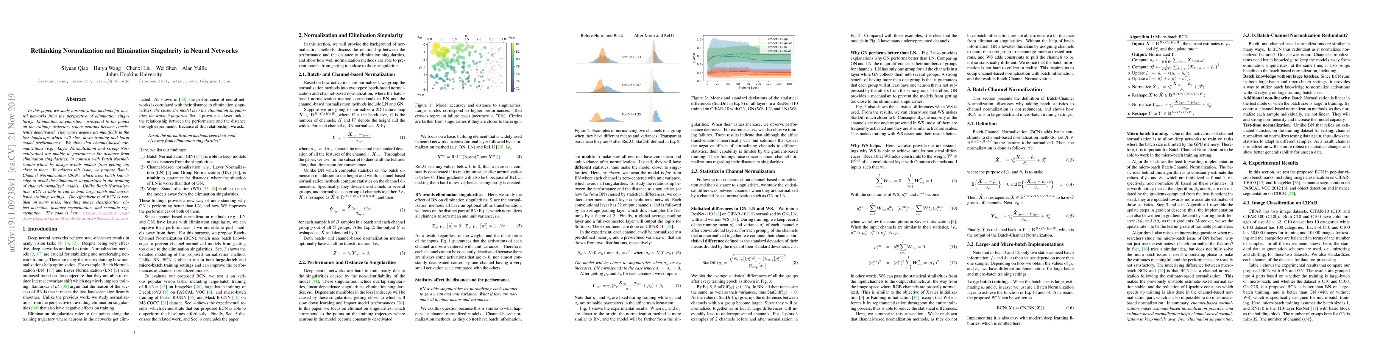 Researchers propose BatchChannel Normalization to address elimination singularities in neural networks, which can slow down training and harm performance, offering a solution for channel-based normalizations.