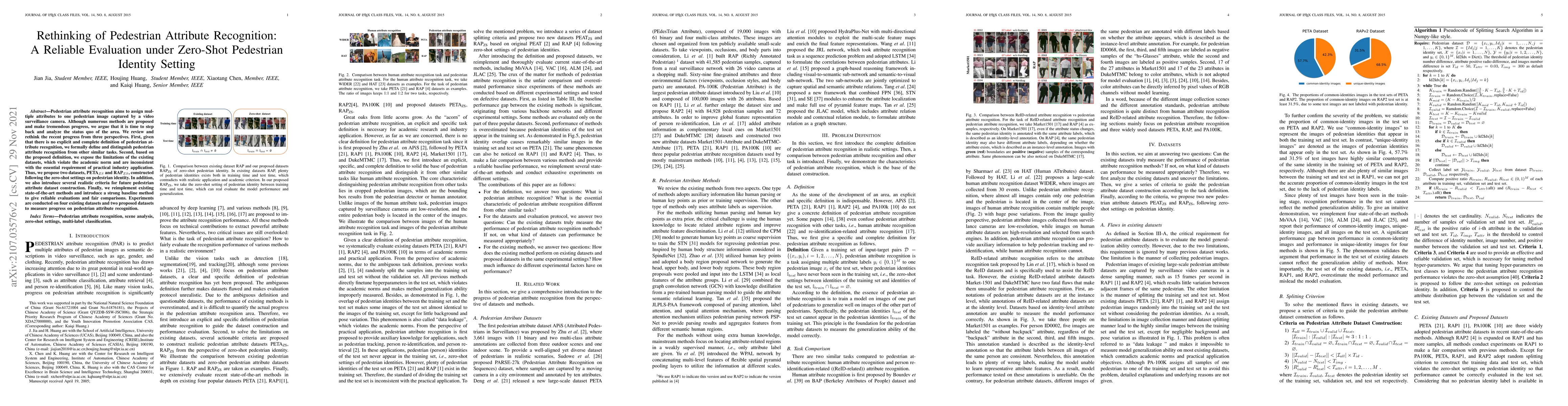 This paper formally defines pedestrian attribute recognition and critiques existing datasets for inconsistencies. It proposes two new datasets and introduces criteria for future dataset construction, followed by a reevaluation of state-of-the-art methods to provide a reliable zero-shot pedestrian identity setting evaluation.