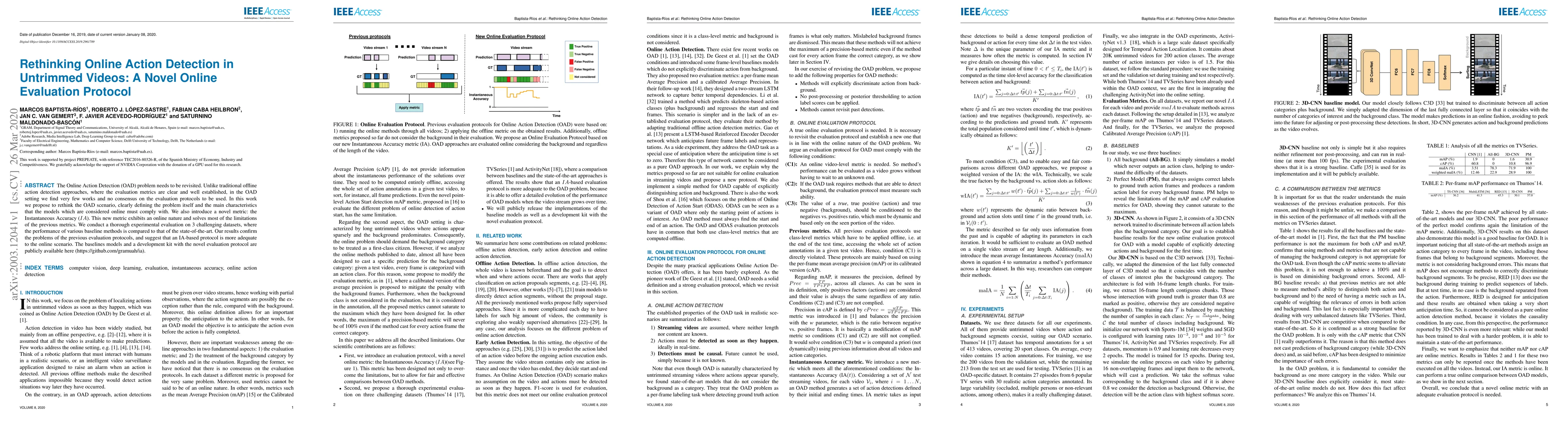 The Online Action Detection (OAD) problem needs to be revisited. Unlike traditional offline action detection approaches, where the evaluation metrics are clear and well established, in the OAD setting we find very few works and no consensus on the evaluation protocols to be used. In this work we propose to rethink the OAD scenario, clearly defining the problem itself and the main characteristics that the models which are considered online must comply with. We also introduce a novel metric: the Instantaneous Accuracy ($IA$). This new metric exhibits an \emph{online} nature and solves most of the limitations of the previous metrics. We conduct a thorough experimental evaluation on 3 challenging datasets, where the performance of various baseline methods is compared to that of the state-of-the-art. Our results confirm the problems of the previous evaluation protocols, and suggest that an IA-based protocol is more adequate to the online scenario. The baselines models and a development kit with the novel evaluation protocol are publicly available: https://github.com/gramuah/ia.