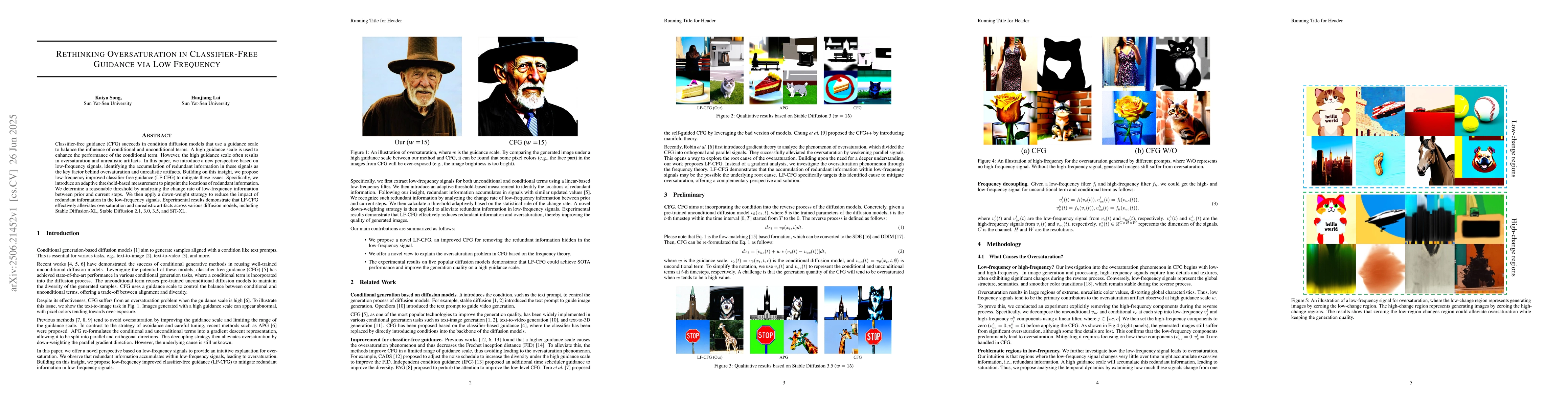 This work is the first to explicitly leverage low-frequency signal analysis to improve guidance in diffusion models, providing a new insight into the causes of oversaturation and a practical mitigation strategy.