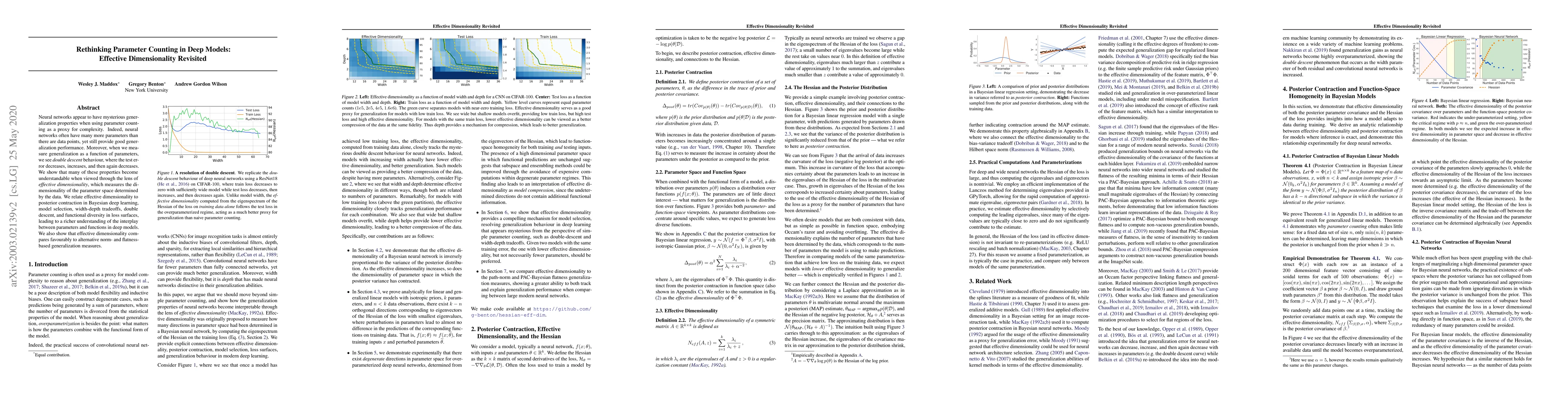 Neural networks appear to have mysterious generalization properties when using parameter counting as a proxy for complexity. Indeed, neural networks often have many more parameters than there are data points, yet still provide good generalization performance. Moreover, when we measure generalization as a function of parameters, we see double descent behaviour, where the test error decreases, increases, and then again decreases. We show that many of these properties become understandable when viewed through the lens of effective dimensionality, which measures the dimensionality of the parameter space determined by the data. We relate effective dimensionality to posterior contraction in Bayesian deep learning, model selection, width-depth tradeoffs, double descent, and functional diversity in loss surfaces, leading to a richer understanding of the interplay between parameters and functions in deep models. We also show that effective dimensionality compares favourably to alternative norm- and flatness- based generalization measures.