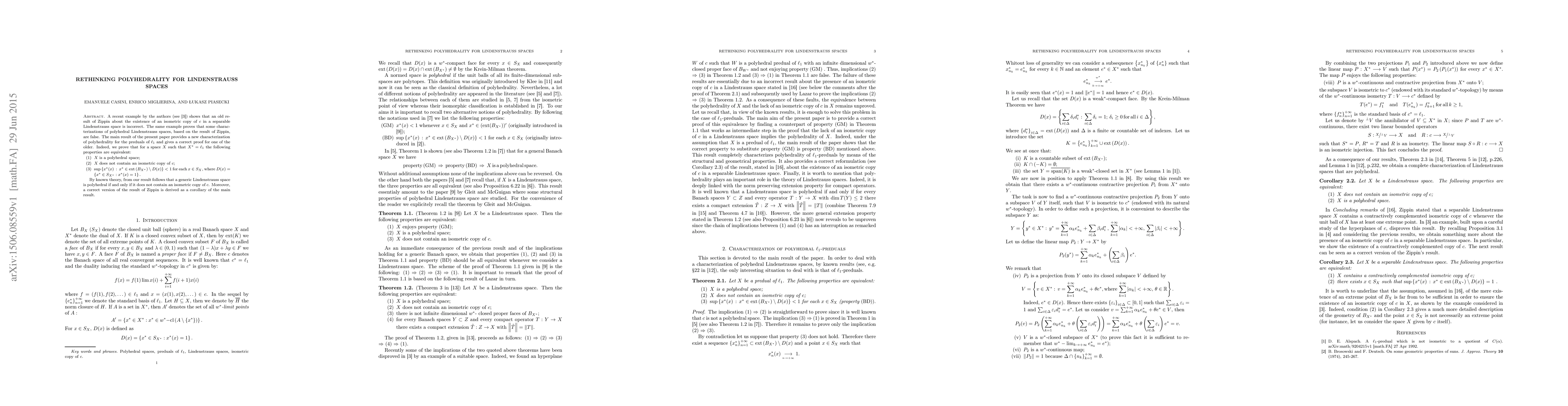 This paper corrects previous misconceptions about the characterization of polyhedrality in Lindenstrauss spaces, providing a new accurate characterization for the preduals of $\ell_{1}$. It establishes that a space $X$ with $X^{*}=\ell_{1}$ is polyhedral if and only if it does not contain an isometric copy of $c$.