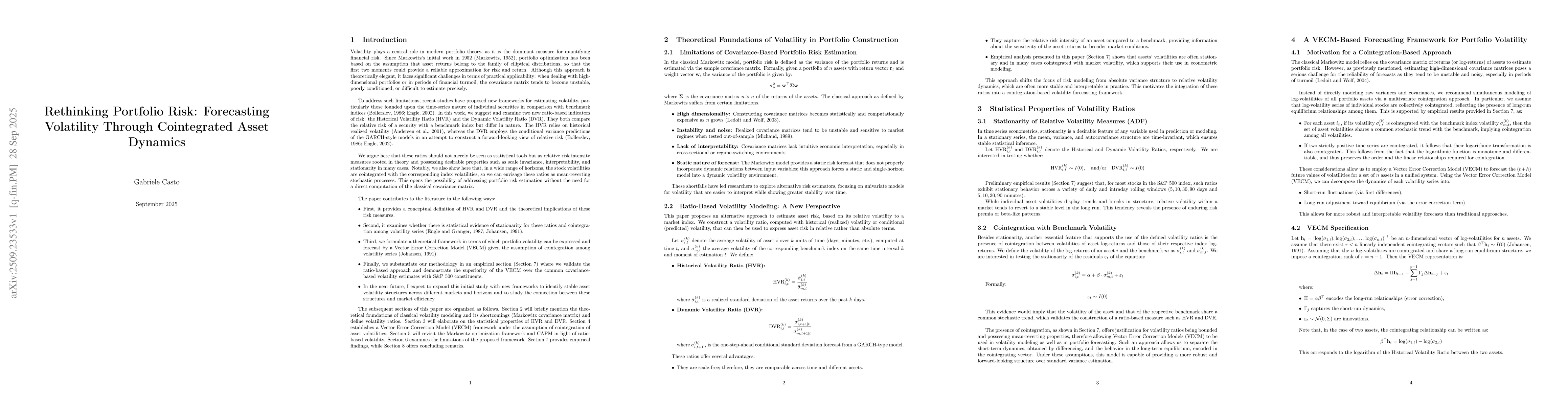 This research establishes a robust framework for portfolio risk modeling that improves forecasting accuracy, particularly for short horizons and high-dimensional portfolios. It provides practical insights for risk management and portfolio construction by leveraging cointegration-aware volatility modeling.