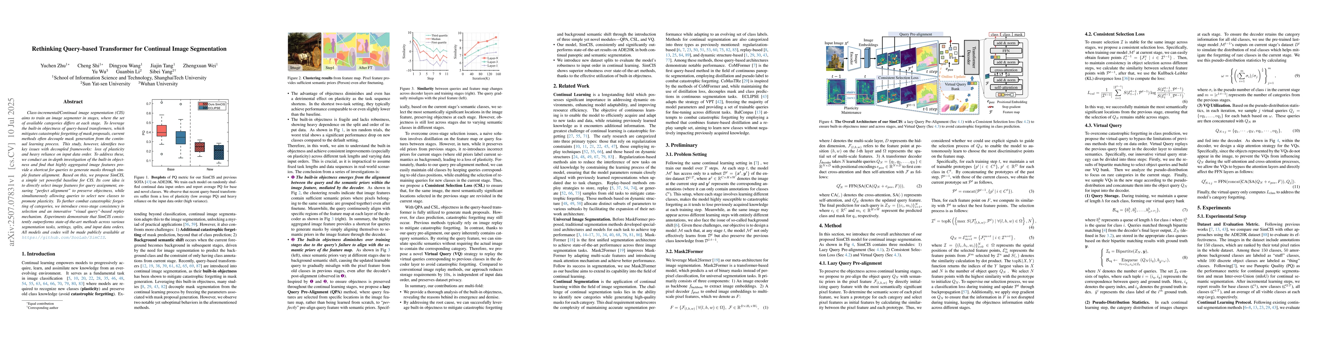 Class-incremental/Continual image segmentation (CIS) aims to train an image segmenter in stages, where the set of available categories differs at each stage. To leverage the built-in objectness of query-based transformers, which mitigates catastrophic forgetting of mask proposals, current methods often decouple mask generation from the continual learning process. This study, however, identifies two key issues with decoupled frameworks: loss of plasticity and heavy reliance on input data order. To address these, we conduct an in-depth investigation of the built-in objectness and find that highly aggregated image features provide a shortcut for queries to generate masks through simple feature alignment. Based on this, we propose SimCIS, a simple yet powerful baseline for CIS. Its core idea is to directly select image features for query assignment, ensuring "perfect alignment" to preserve objectness, while simultaneously allowing queries to select new classes to promote plasticity. To further combat catastrophic forgetting of categories, we introduce cross-stage consistency in selection and an innovative "visual query"-based replay mechanism. Experiments demonstrate that SimCIS consistently outperforms state-of-the-art methods across various segmentation tasks, settings, splits, and input data orders. All models and codes will be made publicly available at https://github.com/SooLab/SimCIS.