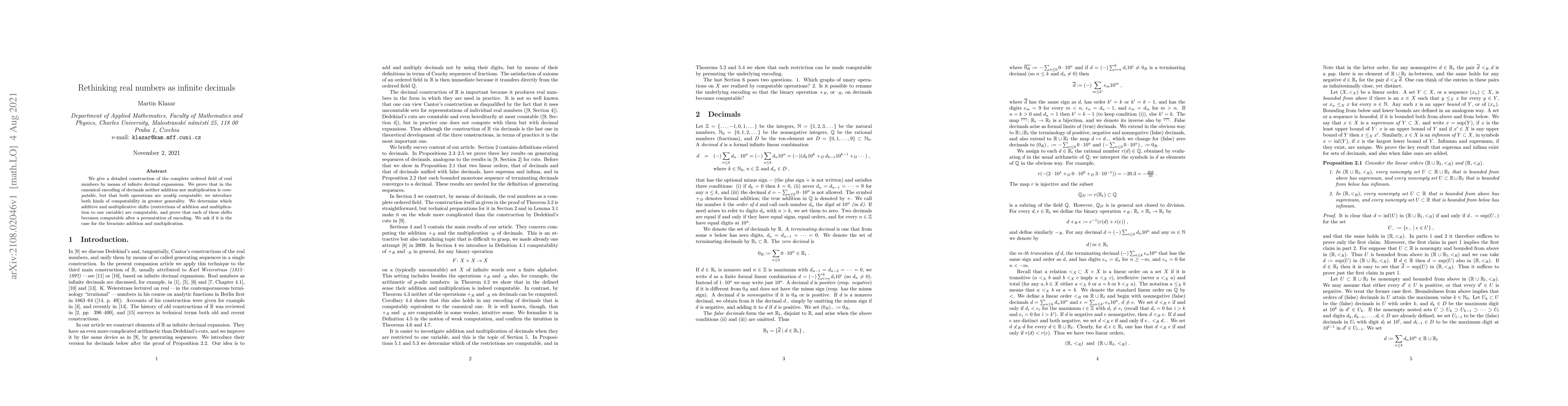A research paper constructs real numbers using infinite decimal expansions and explores the computability of addition and multiplication in these representations, finding that both operations are weakly computable but not computable in their canonical form.