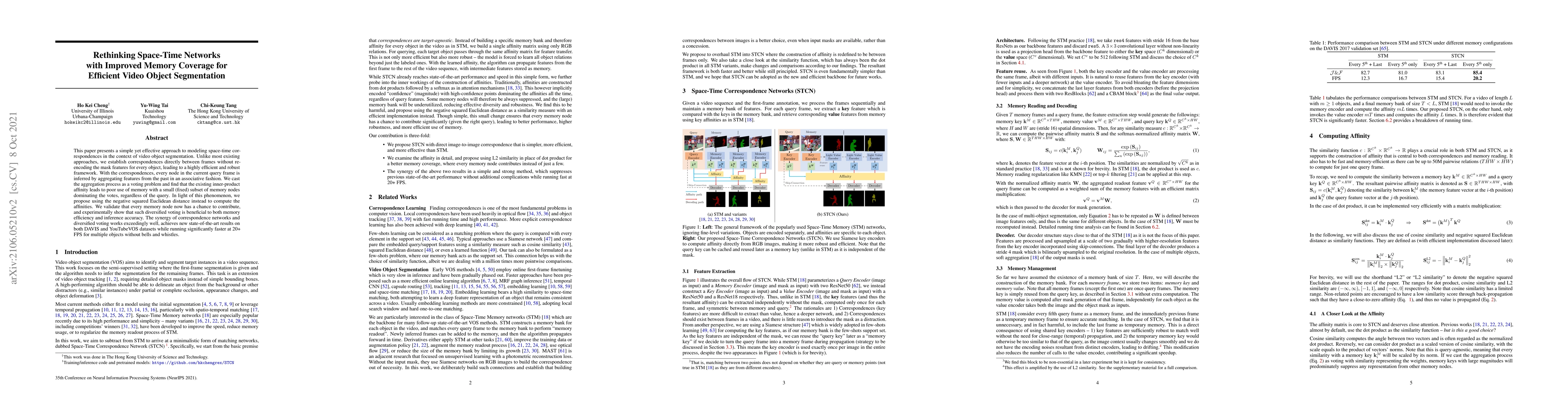 This paper proposes an efficient video object segmentation method by establishing direct space-time correspondences without re-encoding mask features, and introduces a diversified voting mechanism using negative squared Euclidean distance to improve memory coverage and inference accuracy, achieving state-of-the-art results at high speeds.