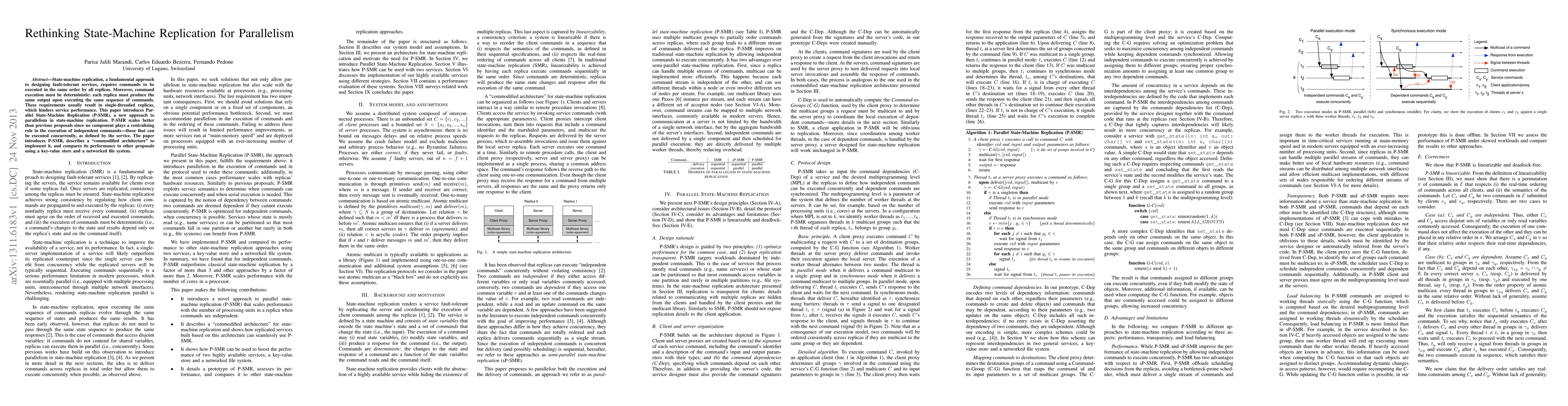 This paper proposes Parallel State-Machine Replication (P-SMR) to enhance parallelism in state-machine replication, addressing the performance limitations of traditional single-threaded replicas. P-SMR allows independent commands to execute concurrently without centralizing roles, achieving better scalability and performance compared to previous methods.