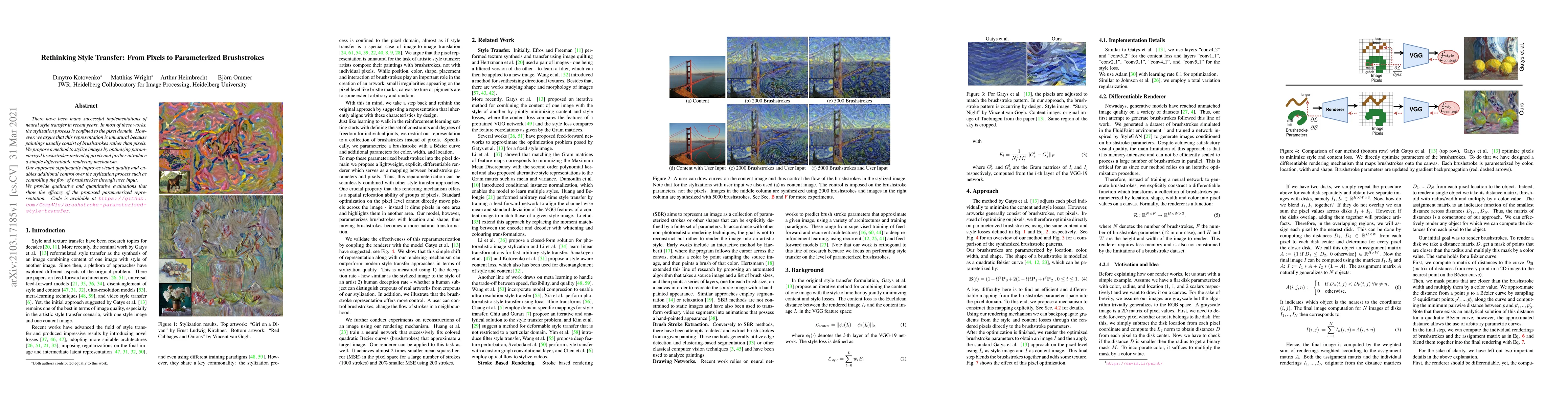 Researchers propose a new method for stylizing images using parameterized brushstrokes instead of pixels, improving visual quality and enabling user control over the style transfer process.