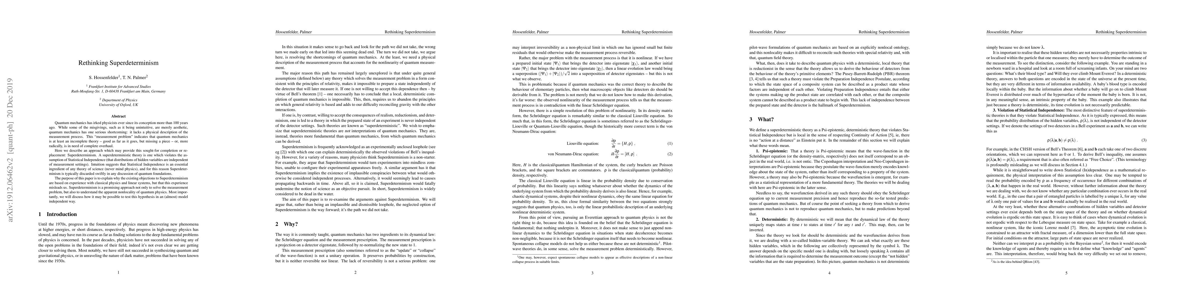 This paper explores the concept of superdeterminism as a potential solution to the measurement problem in quantum mechanics, arguing that it challenges traditional assumptions of statistical independence and offers a new perspective on quantum nonlocality. It also discusses the possibility of testing superdeterminism in a nearly model-independent manner.