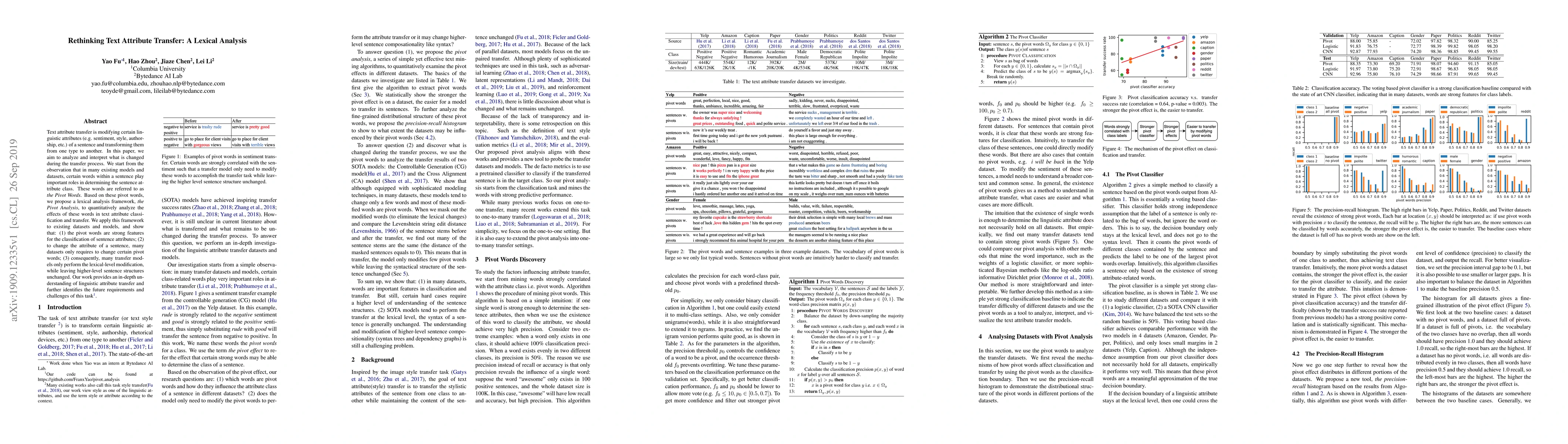 This paper proposes a lexical analysis framework called Pivot Analysis to examine how certain key words, termed Pivot Words, influence text attribute classification and transfer. The study reveals that pivot words are crucial features and that modifying these words can effectively change sentence attributes, often without altering higher-level sentence structures.