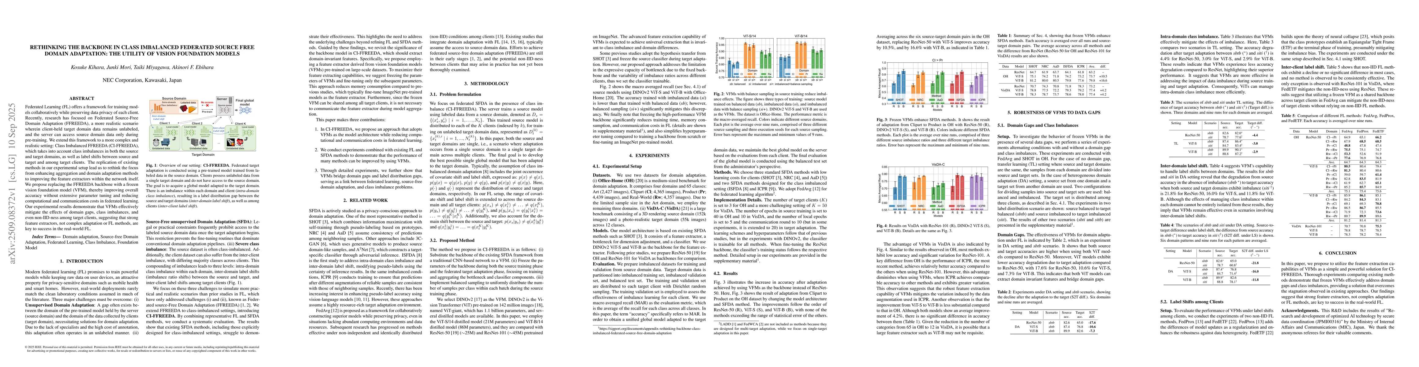 Federated Learning (FL) offers a framework for training models collaboratively while preserving data privacy of each client. Recently, research has focused on Federated Source-Free Domain Adaptation (FFREEDA), a more realistic scenario wherein client-held target domain data remains unlabeled, and the server can access source domain data only during pre-training. We extend this framework to a more complex and realistic setting: Class Imbalanced FFREEDA (CI-FFREEDA), which takes into account class imbalances in both the source and target domains, as well as label shifts between source and target and among target clients. The replication of existing methods in our experimental setup lead us to rethink the focus from enhancing aggregation and domain adaptation methods to improving the feature extractors within the network itself. We propose replacing the FFREEDA backbone with a frozen vision foundation model (VFM), thereby improving overall accuracy without extensive parameter tuning and reducing computational and communication costs in federated learning. Our experimental results demonstrate that VFMs effectively mitigate the effects of domain gaps, class imbalances, and even non-IID-ness among target clients, suggesting that strong feature extractors, not complex adaptation or FL methods, are key to success in the real-world FL.