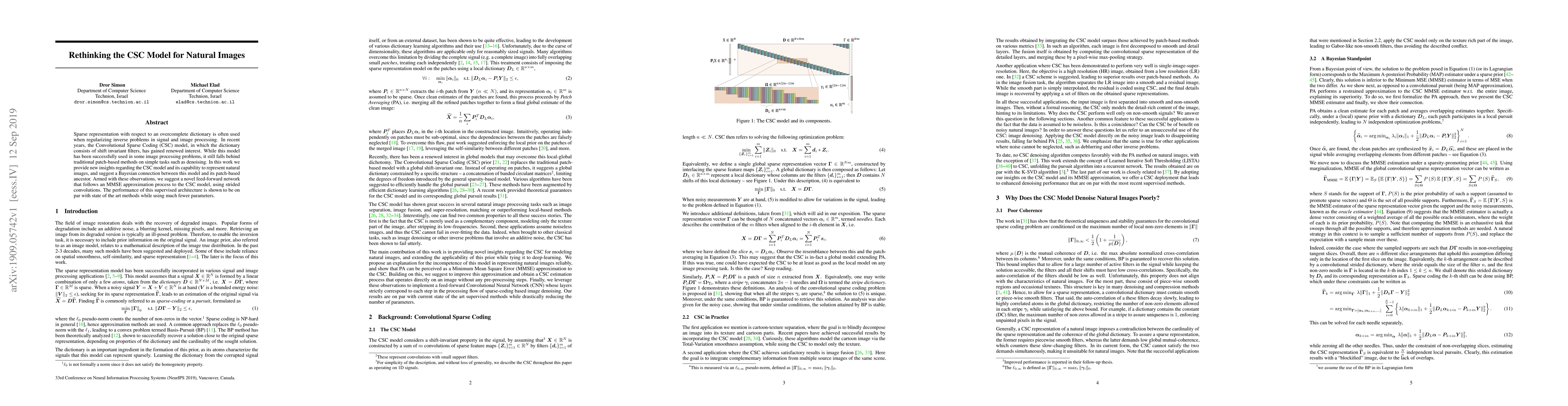 This work stands out by addressing the limitations of the CSC model for natural images, particularly in the presence of noise, through an MMSE approximation pursuit and a novel supervised denoising model (CSCNet) that uses fewer parameters than existing state-of-the-art methods.