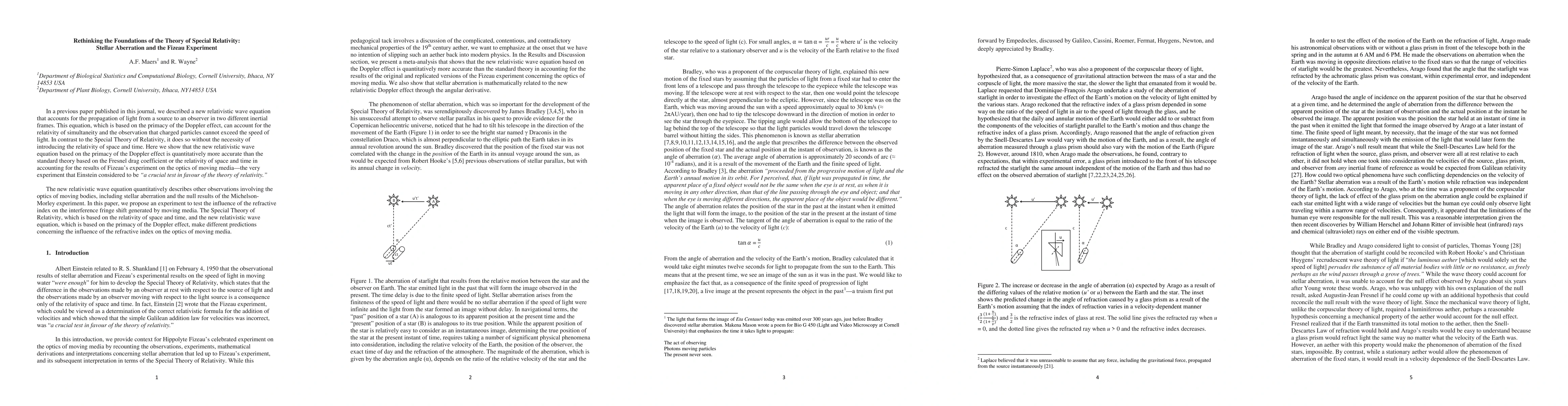 This paper proposes a new relativistic wave equation based on the primacy of the Doppler effect, which is quantitatively more accurate than the standard theory in explaining phenomena like stellar aberration and the Michelson-Morley experiment. It suggests an experiment to test the differing predictions of the new wave equation versus the Special Theory of Relativity regarding the refractive index's influence on moving media.