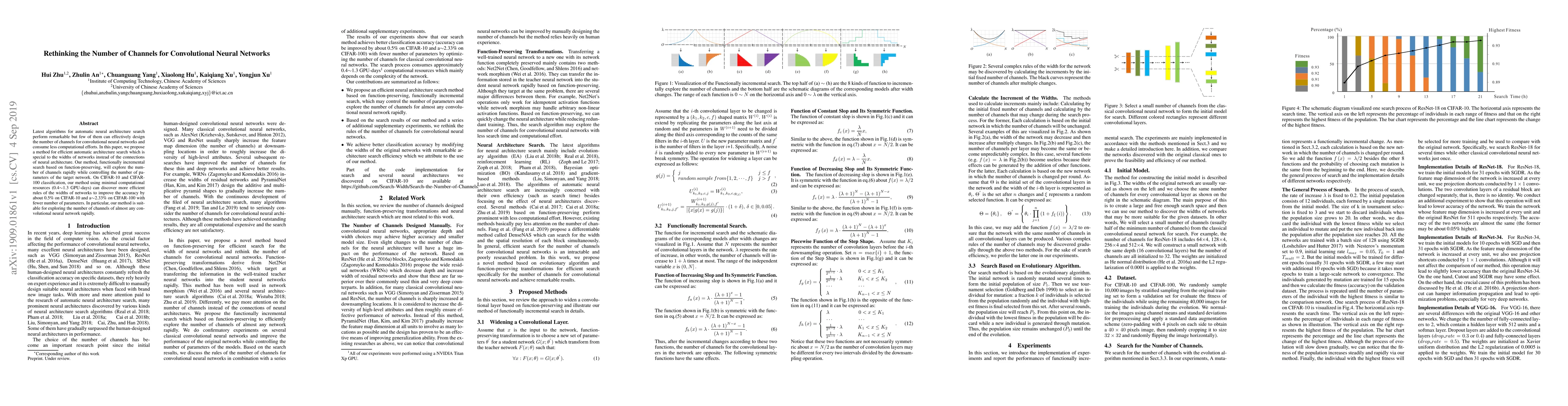 This paper proposes an efficient method for automatic neural architecture search focused on determining the optimal number of channels in convolutional neural networks, achieving improved accuracy with fewer parameters and computational resources. The method, based on functionally incremental search, discovers efficient network widths, enhancing performance by about 0.5% on CIFAR-10 and 2.33% on CIFAR-100.